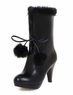 White Xmas Winter Boots Fur Top High Heel Platform Boots