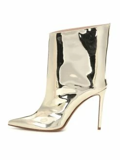 Women Ankle Boots Leather Light Gold Pointed Toe Bright Leather Stiletto Heel High Heel Boots