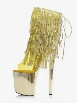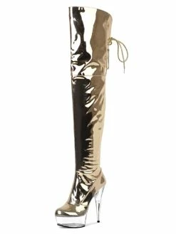 Women Sexy Boots Peep Toe Lace Up Printed Stiletto Heel Rave Club Gold Thigh High Boots Over The Knee Boots