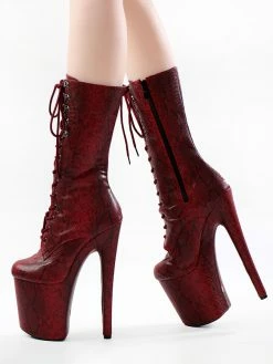 Women Sexy Boots Peep Toe Lace Up Stripes Stiletto Heel Rave Club Burgundy Thigh High Boots Over The Knee Boots