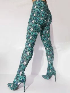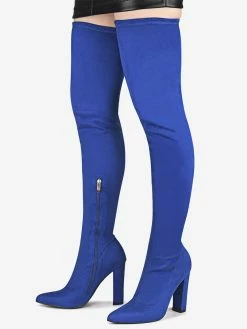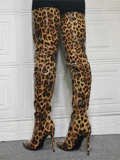 Women’s Thigh High Heel Boots In Orange Patent Bright Leather