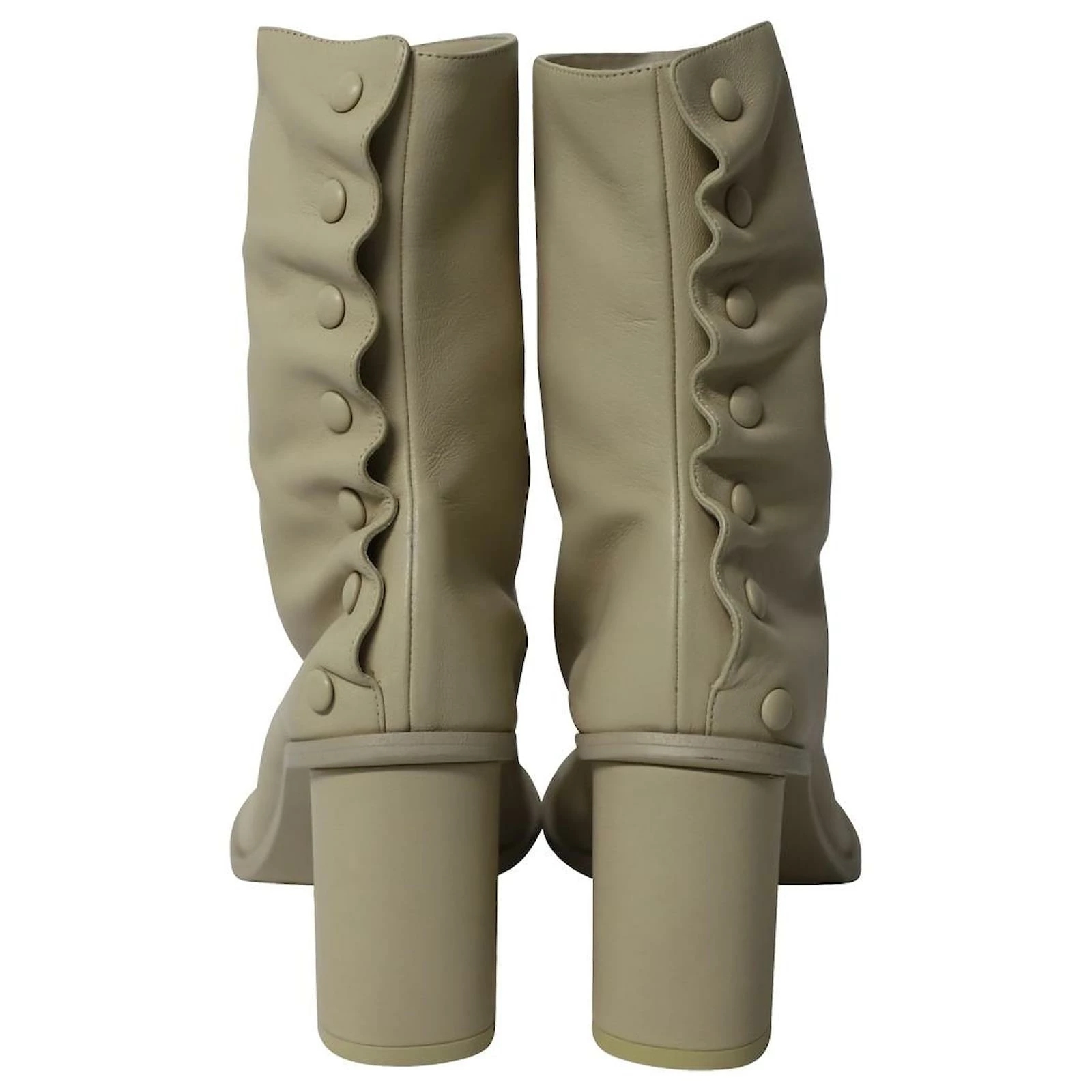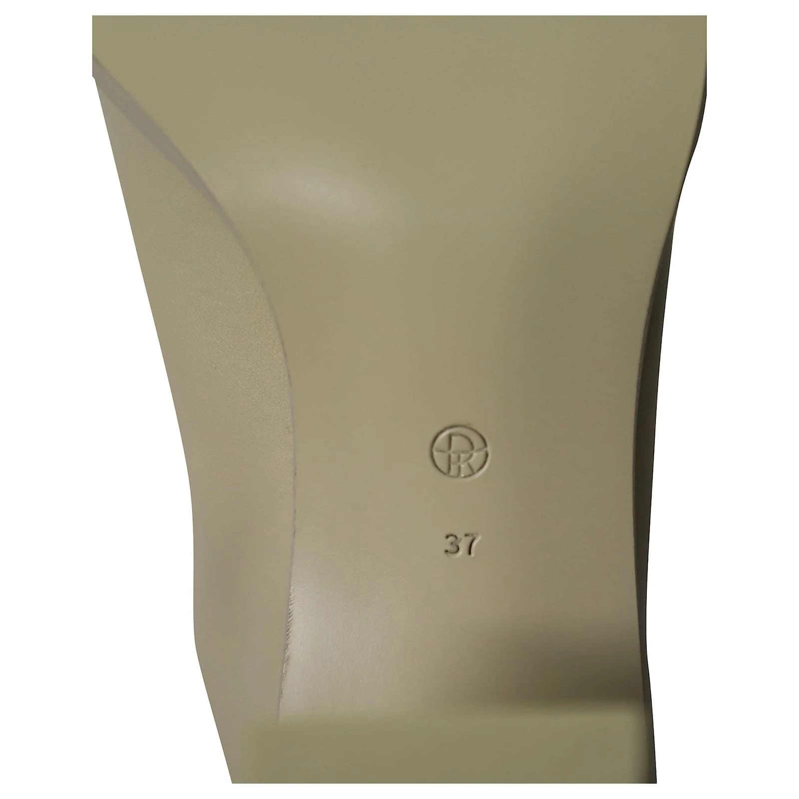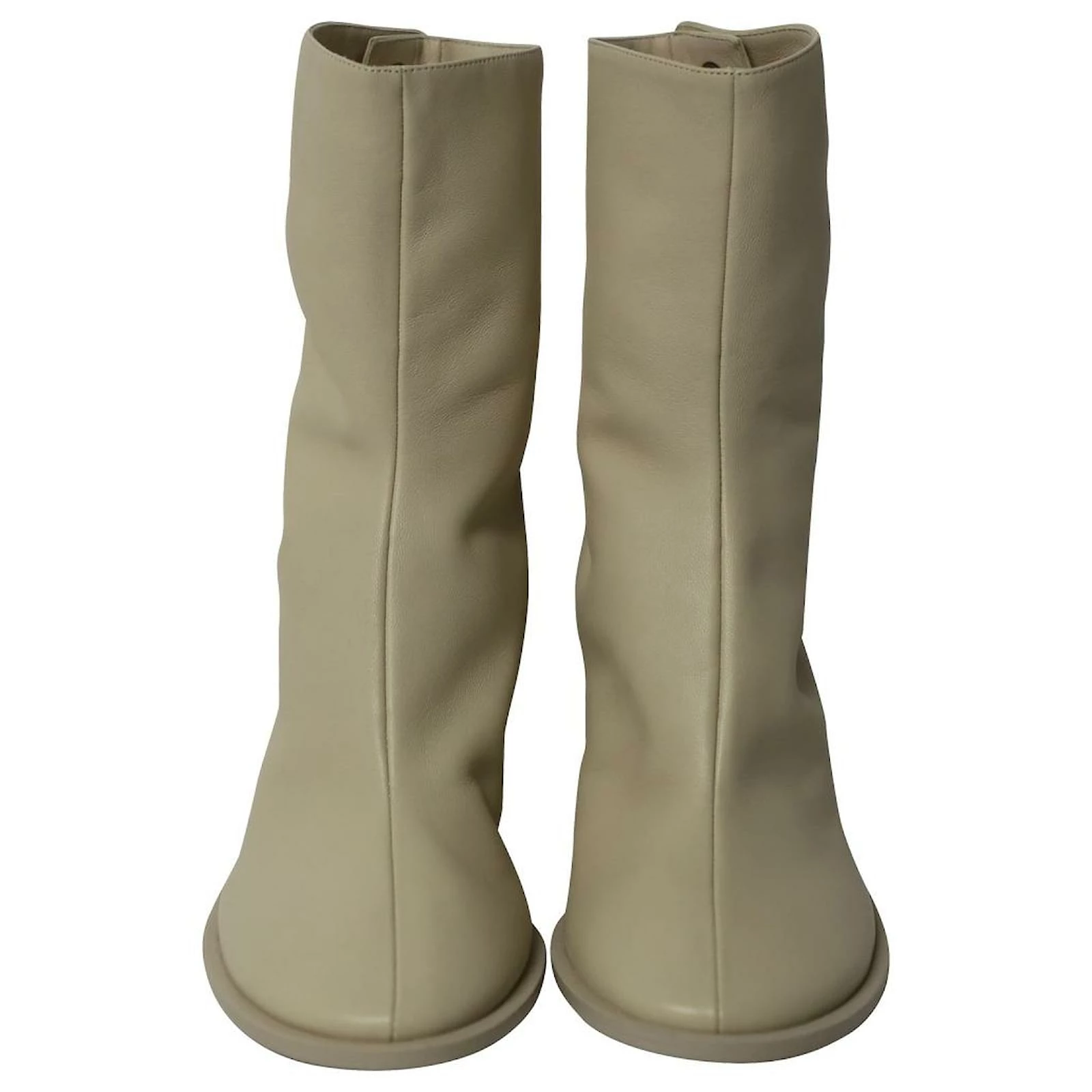 The Row lends its fashionable magic to a staple pair of ankle boots with the Tea Time. The shoes we have here are formed using beige leather and features a pleated, buttoned detailing.