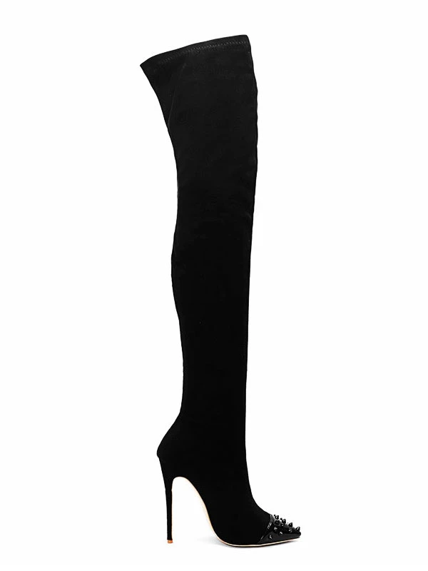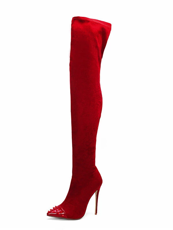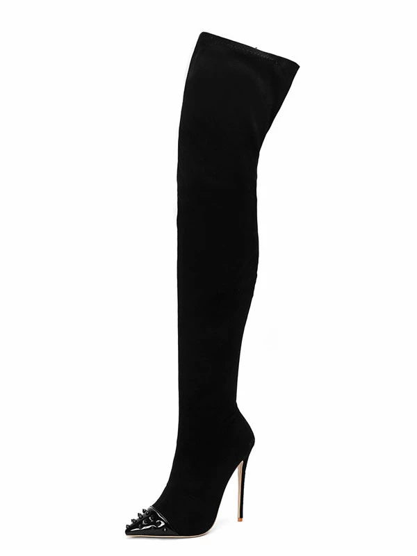 Thigh High Boots Womens Micro Suede Rivets Pointed Toe Stiletto Heel Over The Knee Boots