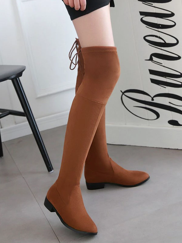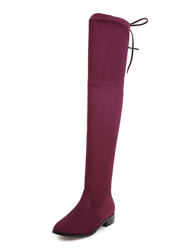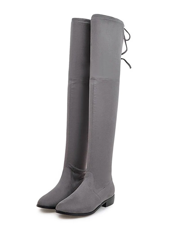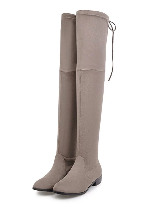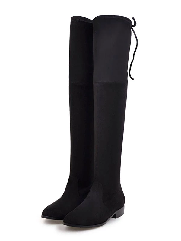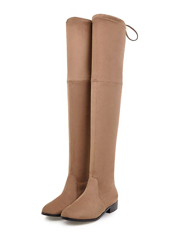 Thigh High Boots Womens Micro Suede Round Toe Flat Heel Over The Knee Boots