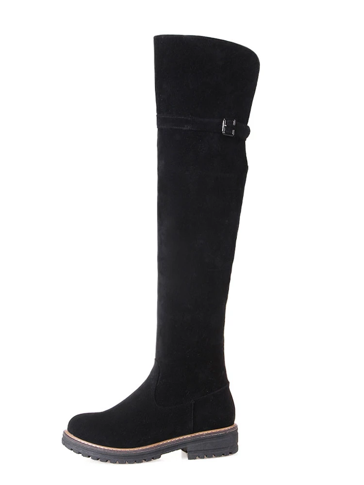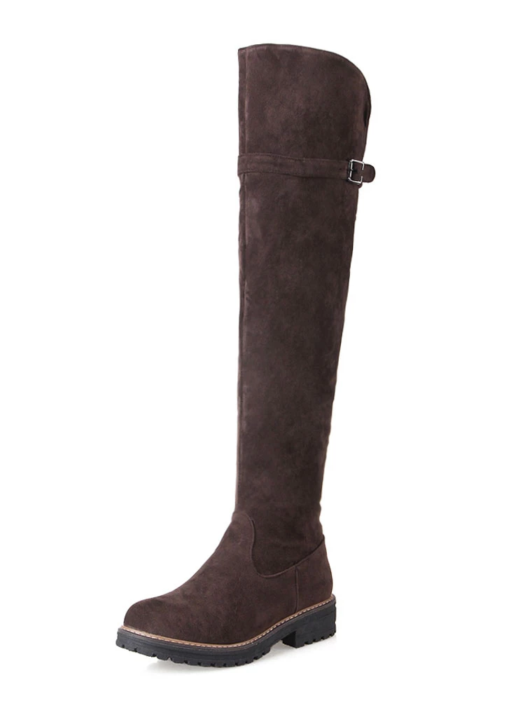 Thigh High Boots Womens Monogram Suede Round Toe Flat Heel Over The Knee Boots