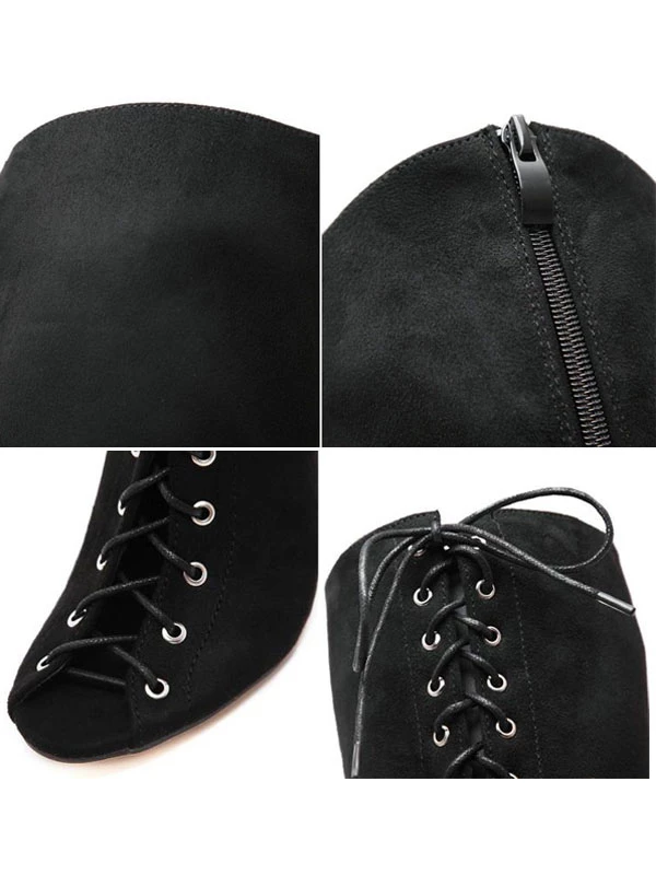 Thigh High Boots Womens Nubuck Lace Up Peep Toe Stiletto Heel Over The Knee Boots