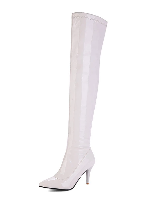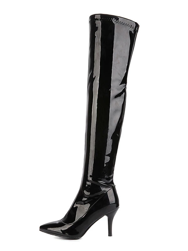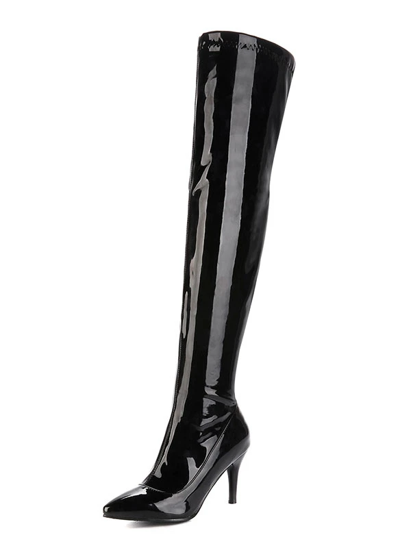 Thigh High Boots Womens Patent Pointed Toe Stiletto Bright Leather Heel Over The Knee Boots