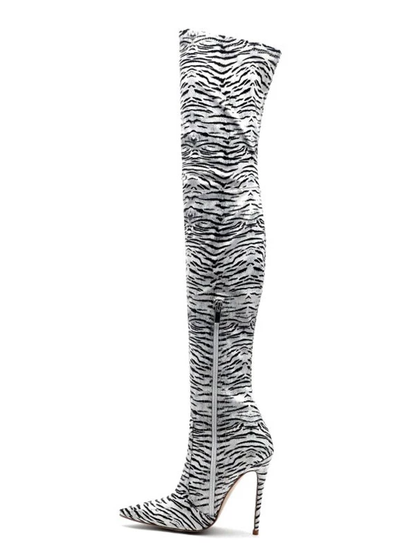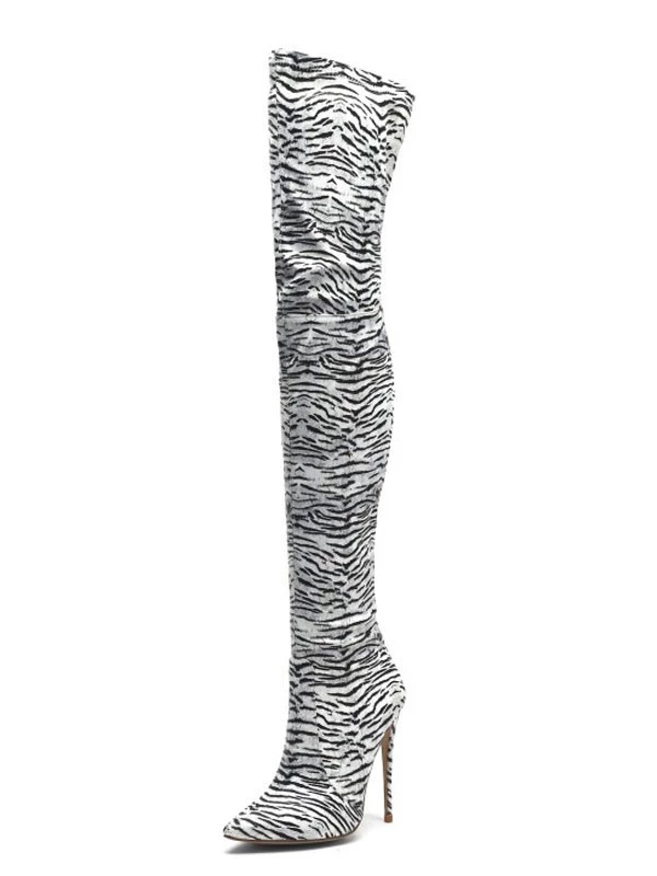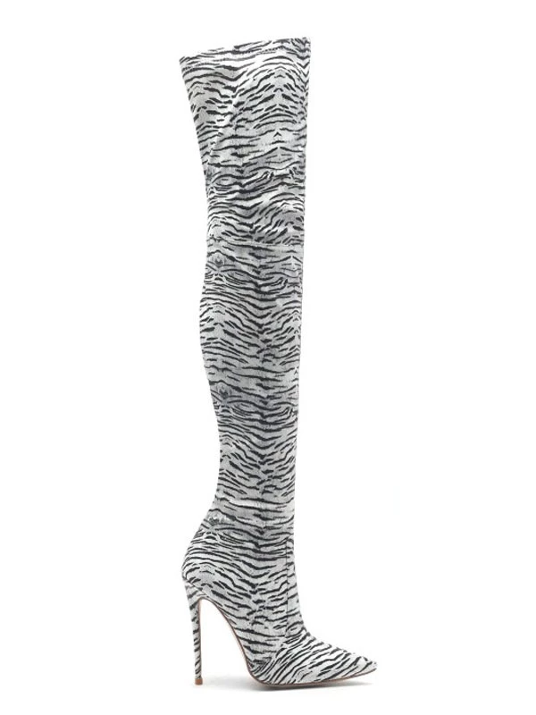 Thigh High Boots Womens Polyster Zebra Print Pointed Toe Stiletto Heel Over The Knee Boots