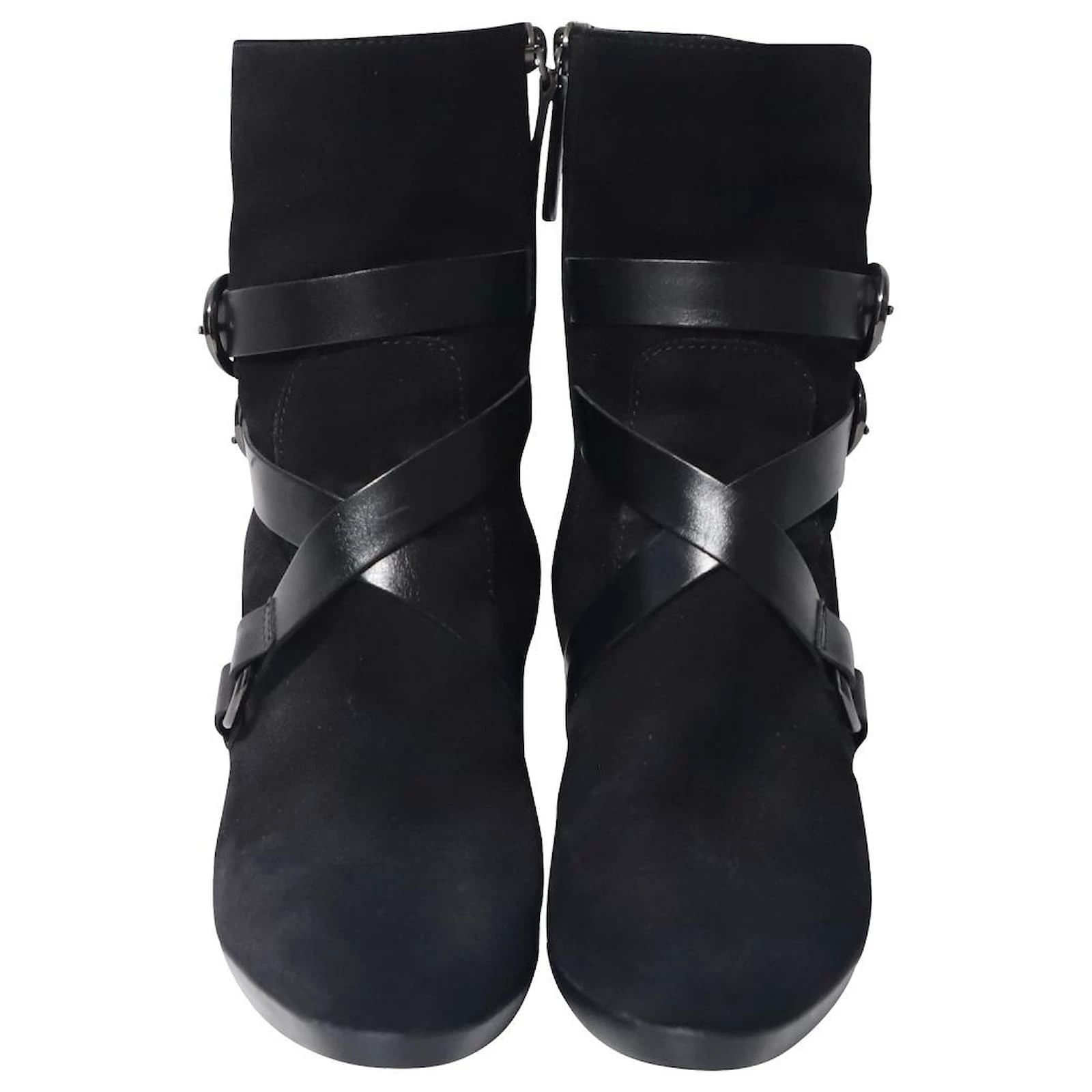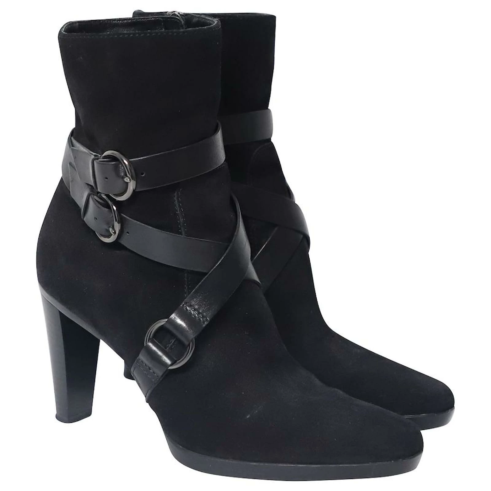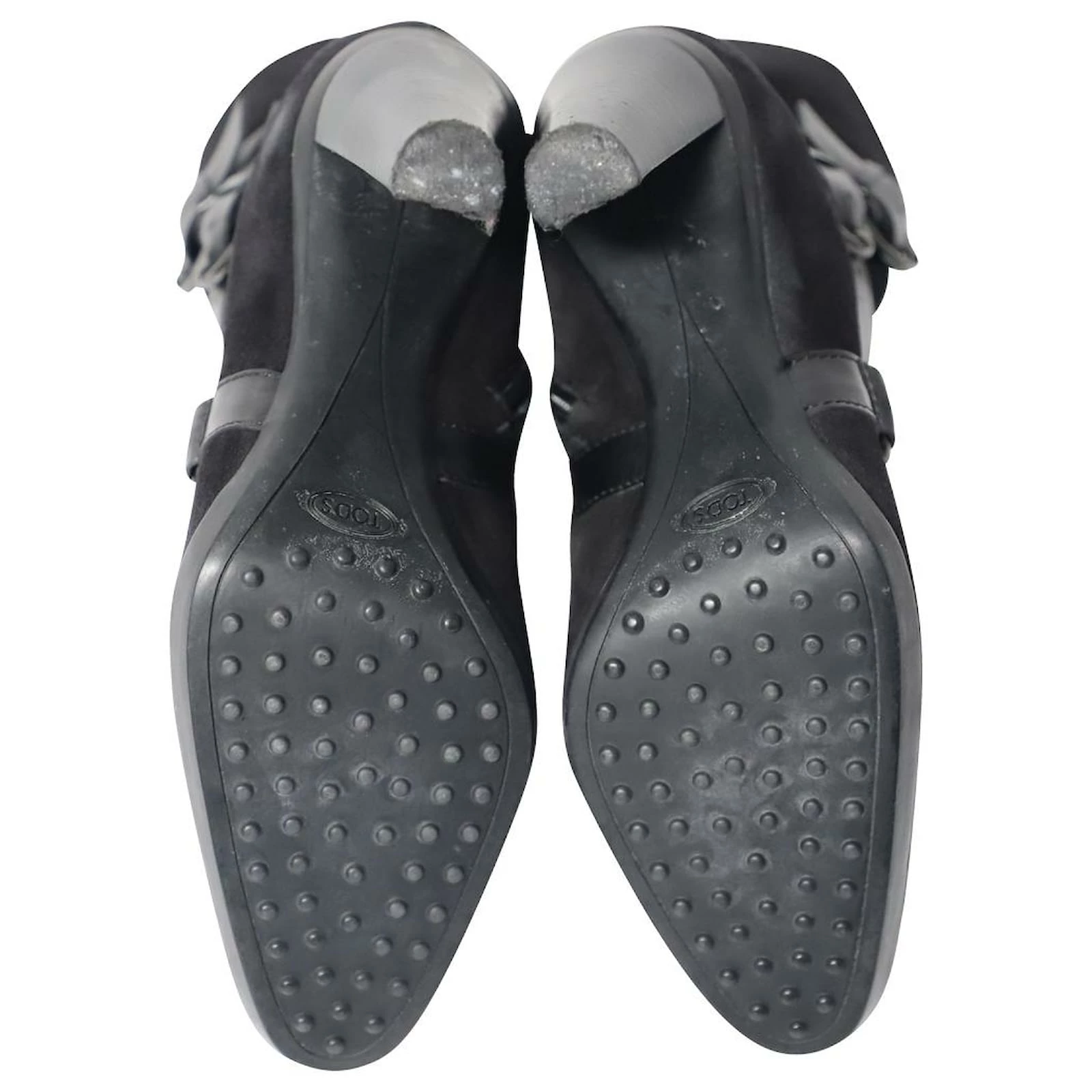 Tod’s Ankle Boots with Leather Strap Detail in Black Suede