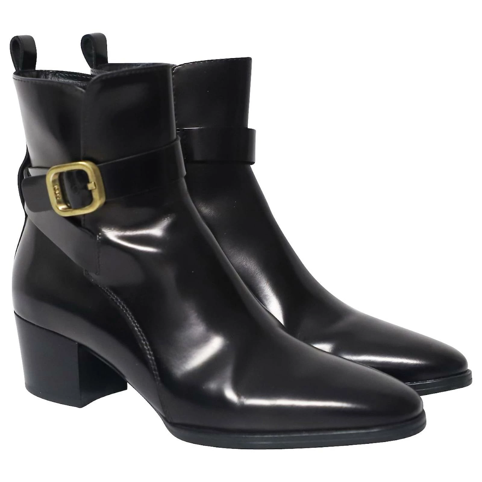 Wrap yourself in wow factor in the Tod’s boot of the season. Impeccably handcrafted in Italy in a glossy spazzolato leather, this style also features an almond shaped toe, a wrap-around detail with a branded buckle and a wearable cuban heel. Style them with skirts or a cropped pant that allows the details of the boot to shine.