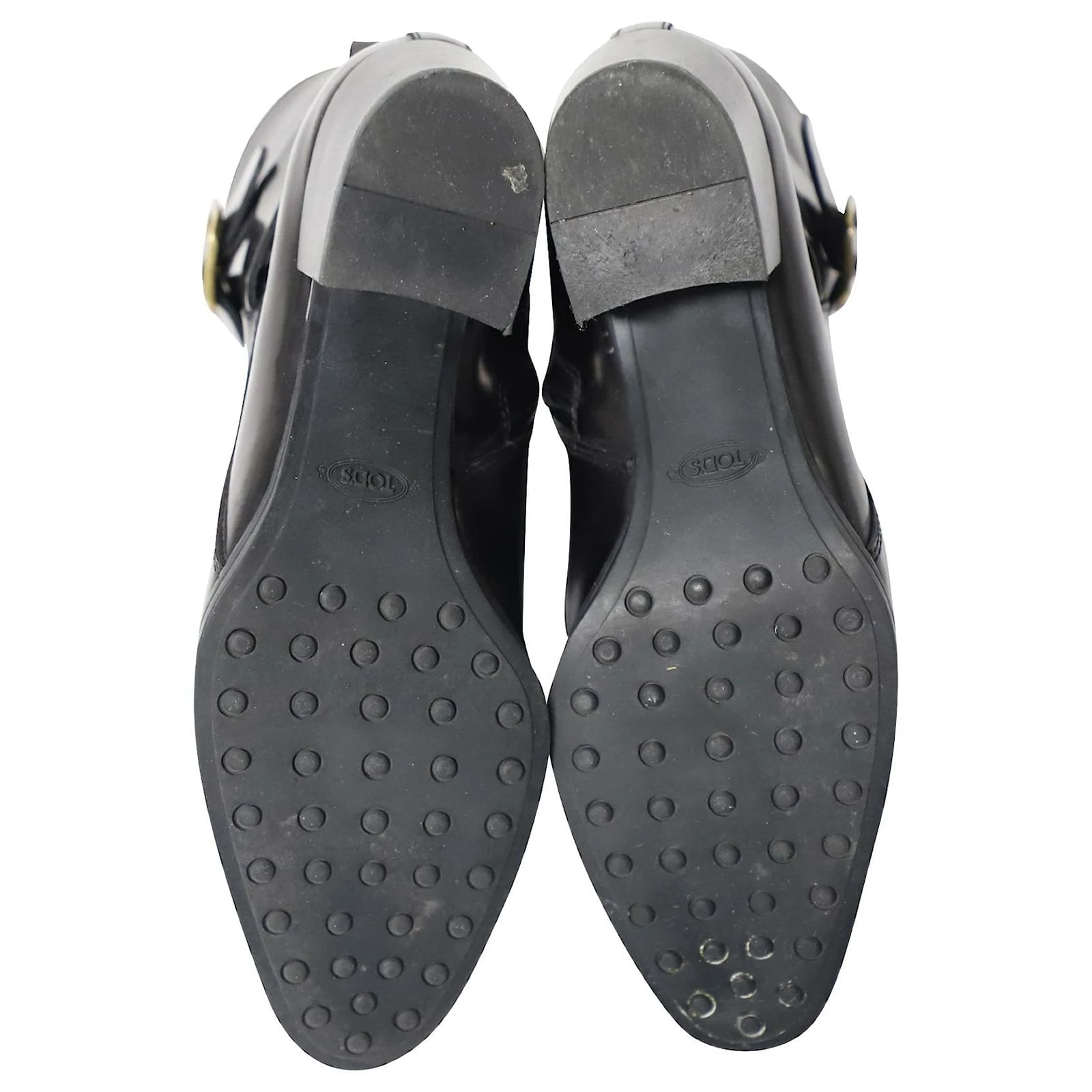 Tod’s Block Heel Wrap Detail Ankle Boots in Black Leather