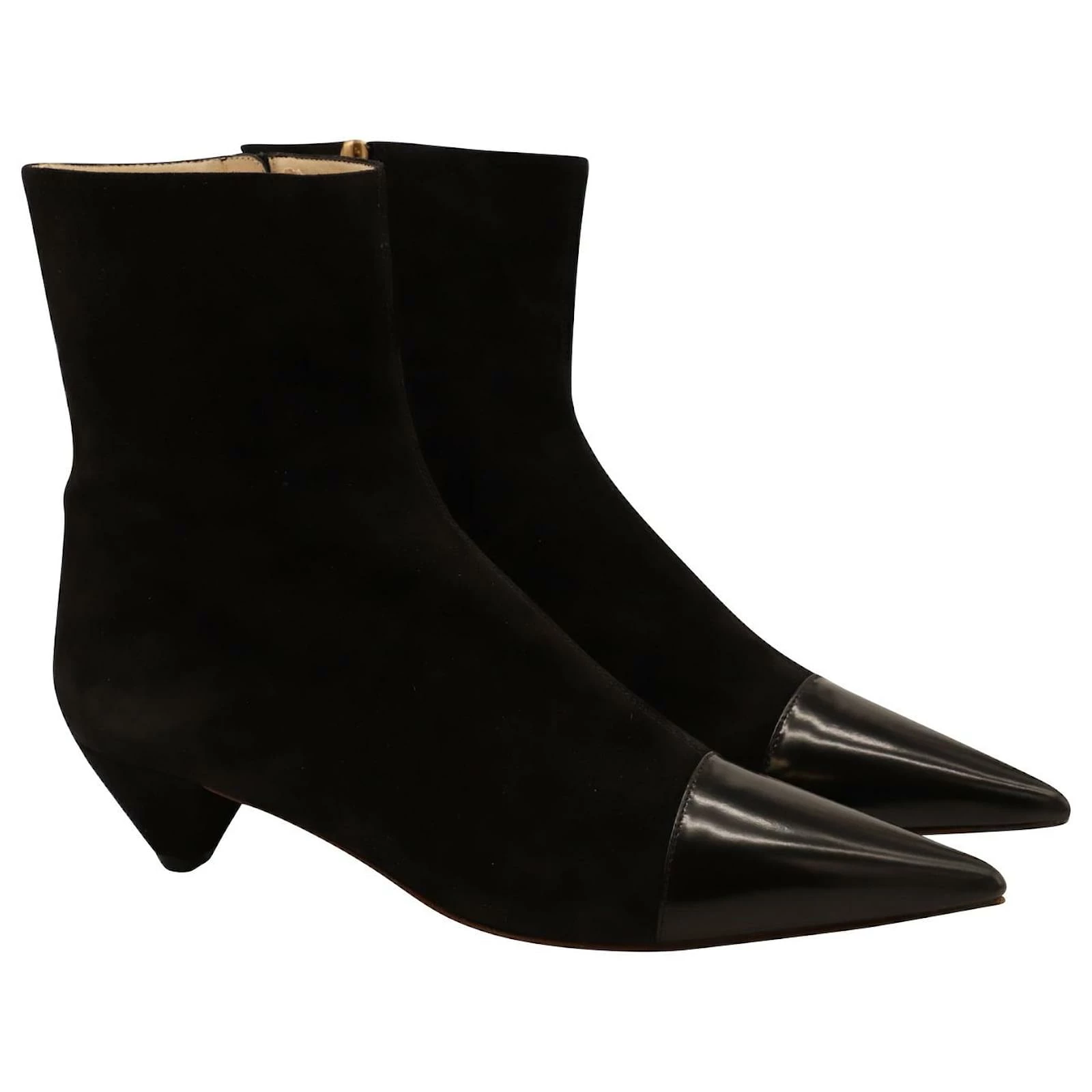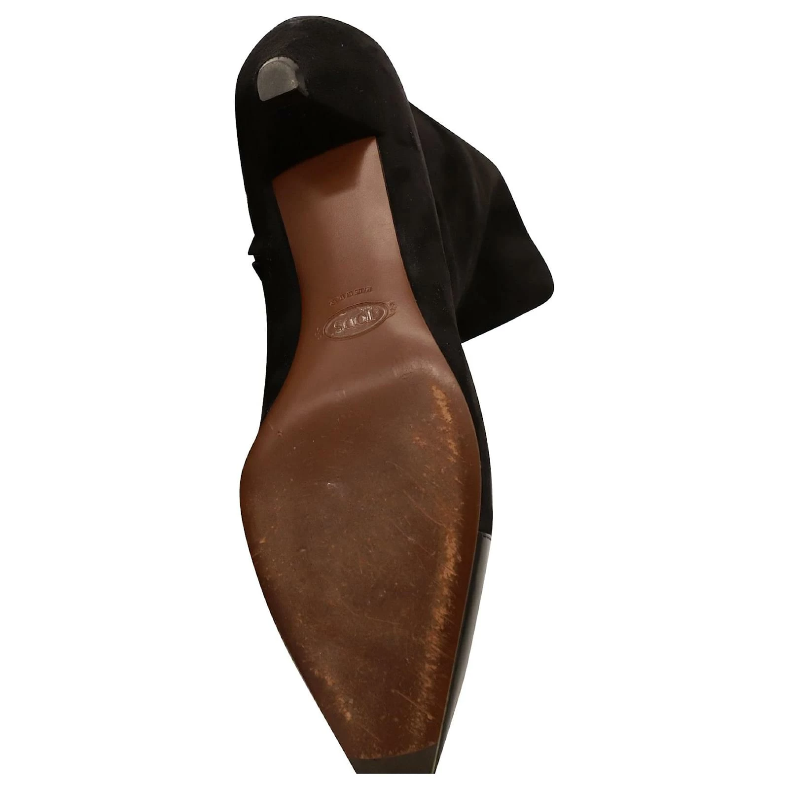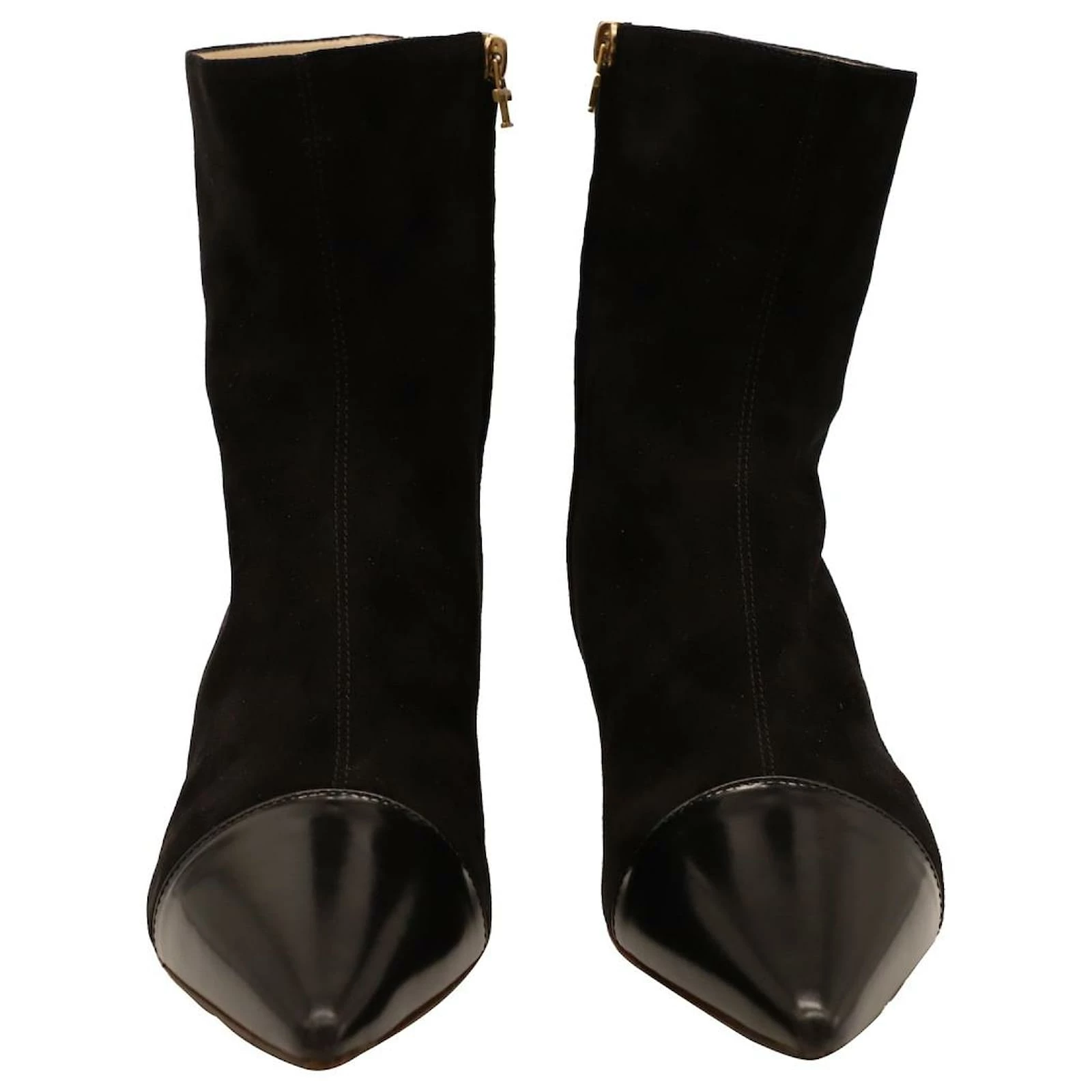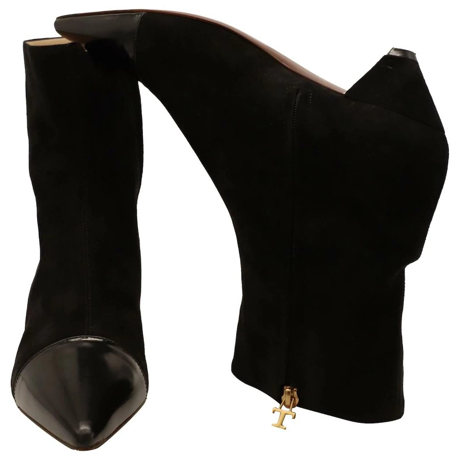 Tod’s Pointed Toe Cap Ankle Boots in Black Suede and Leather