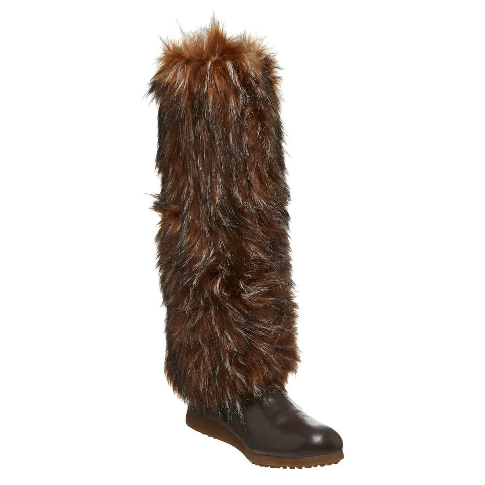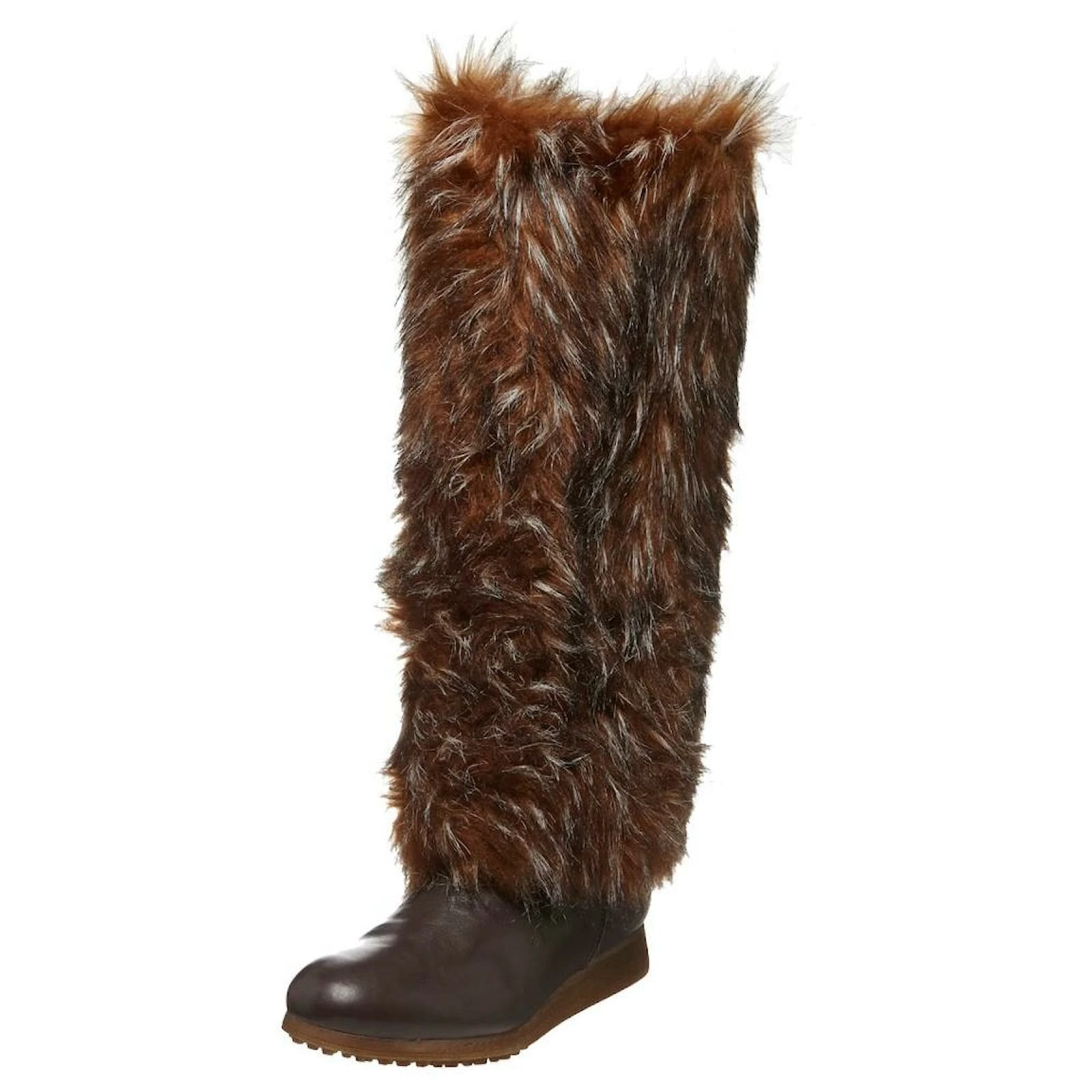 Tosca Blu – Brown Leather And Faux Fur Yeti Moon Boots Beige Light Brown Dark Brown
