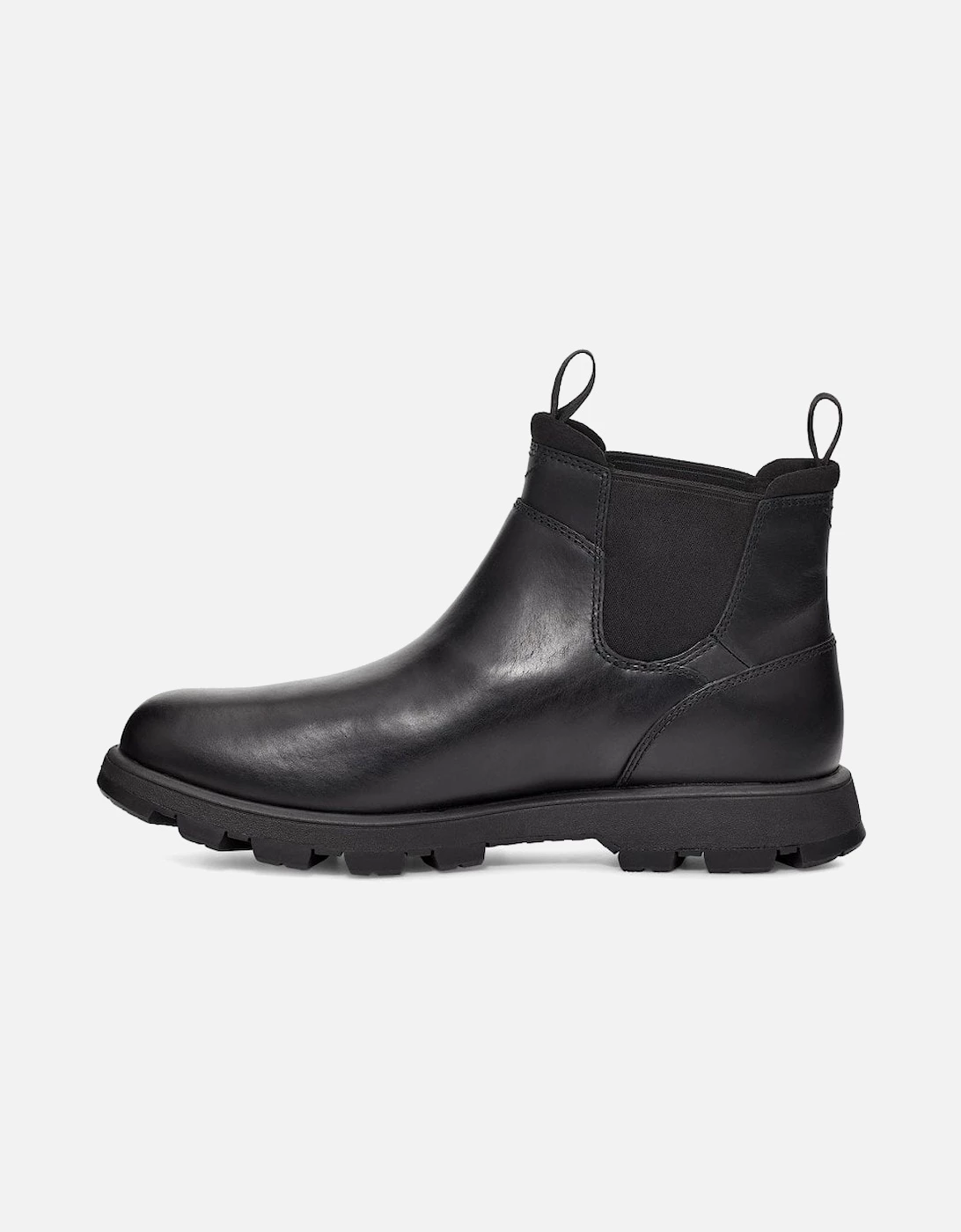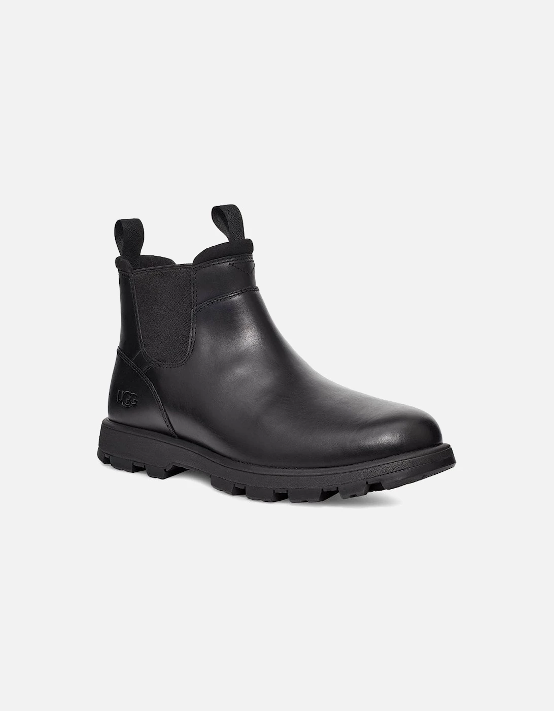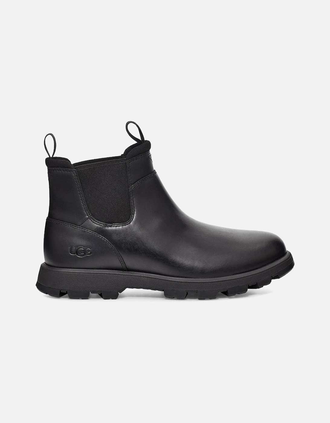 Sleek and functional, these UGG Mens Hillmont Chelsea Boots have a seam-sealed waterproof leather upper for enhanced protection from the elements. They feature front and rear pull tabs for easy entry and a flexible fit. These boots are lined in the signature UGGplush wool blend for softness and warmth, then finished with an ultra-durable Vibram® outsole for outstanding traction. They are slip-on and regular fit, with a foam footbed and EVA midsole. Ugg branding is featured on the side, with a heat-embossed logo, coloured in black.