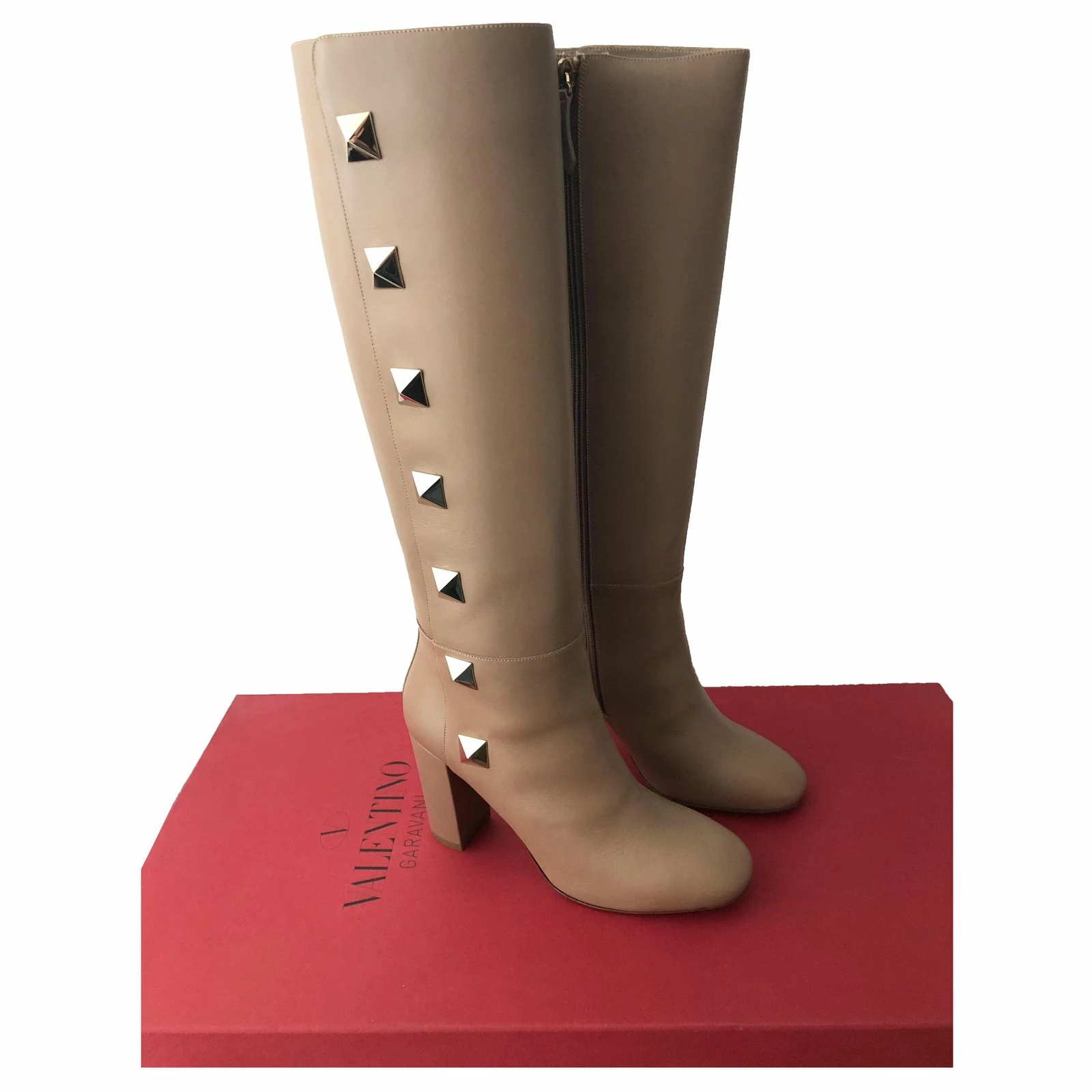 Valentino Rockstud boots in beige calf leather. New never used with dustbag and box.