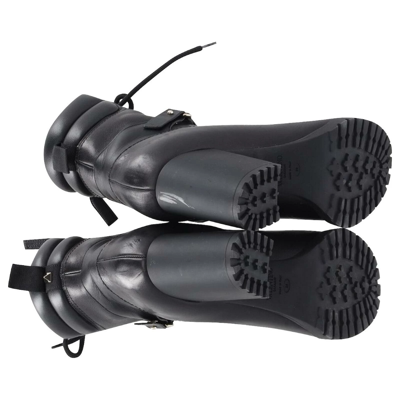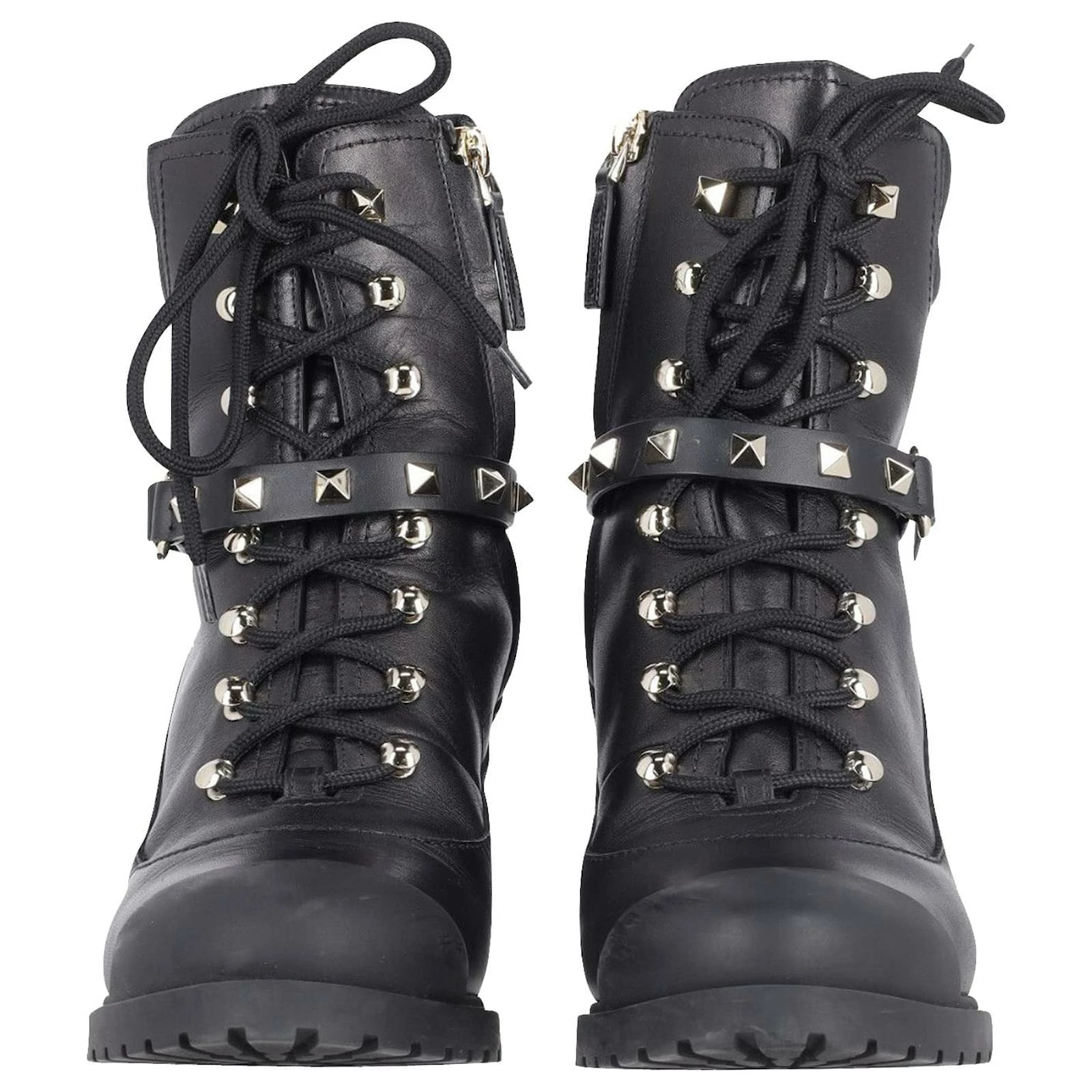 Valentino Garavani Studded Strap Combat Boots in Black Leather