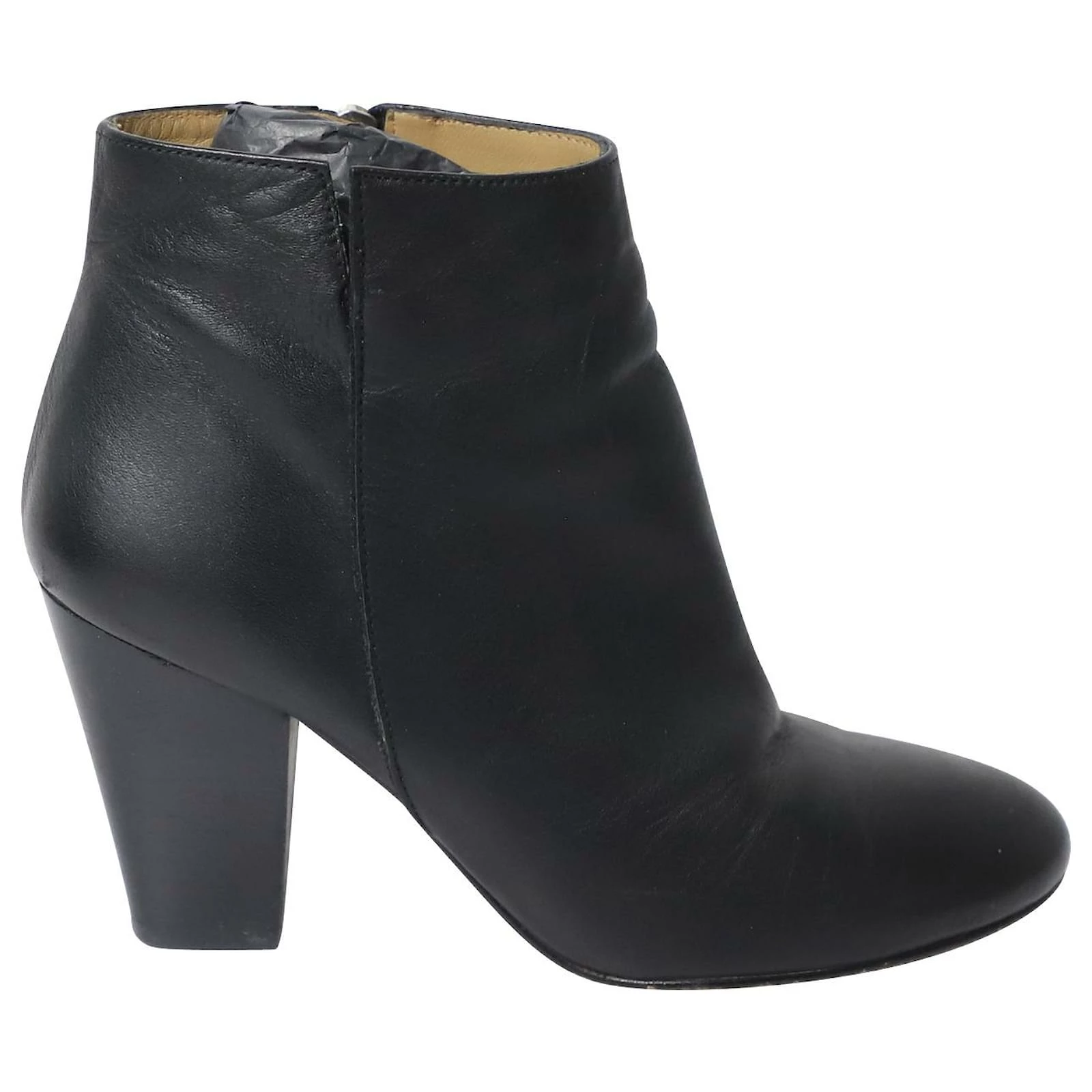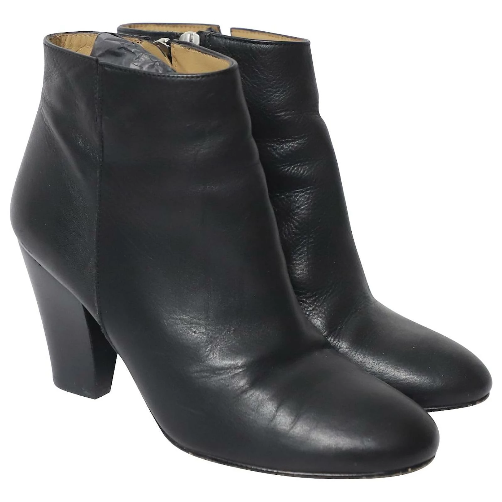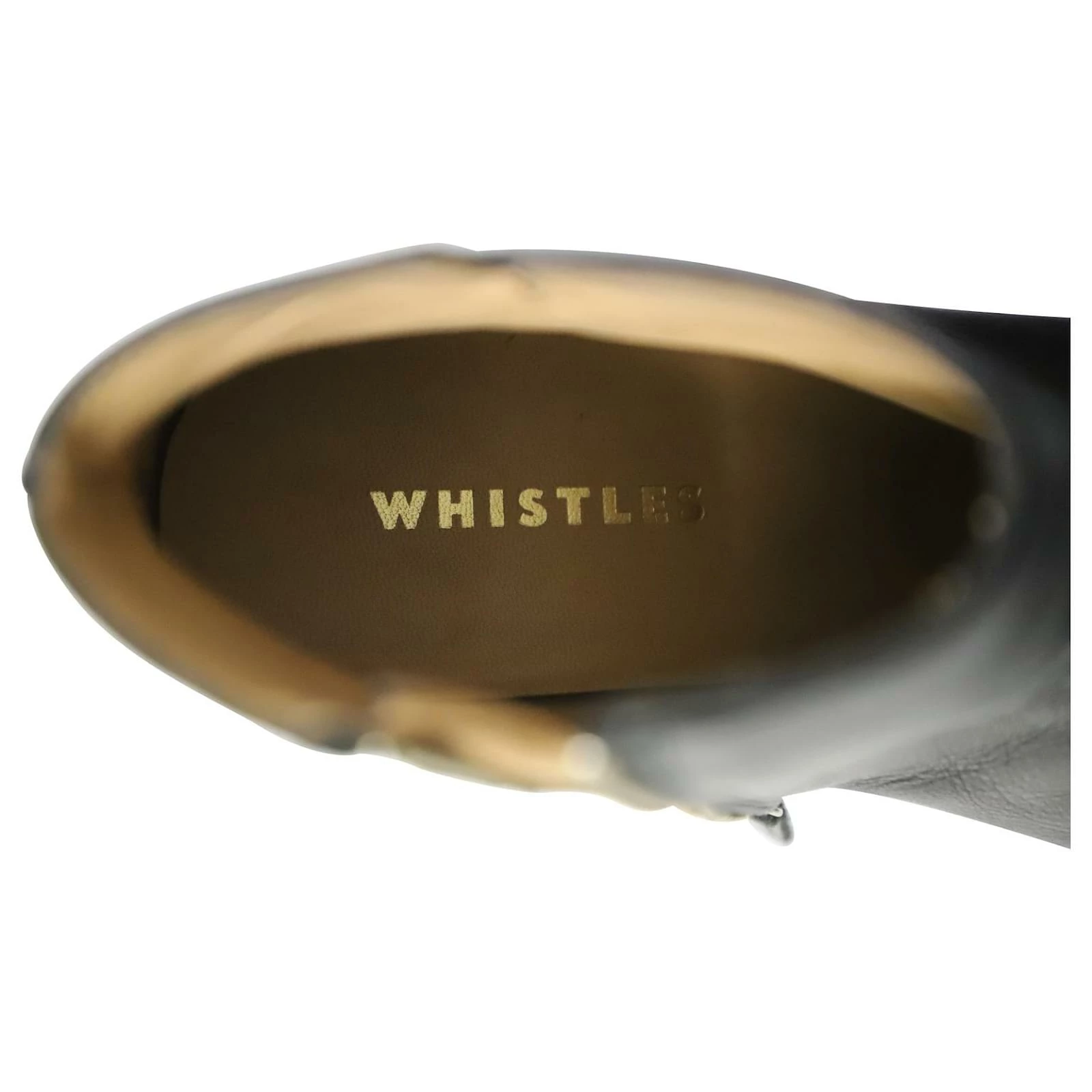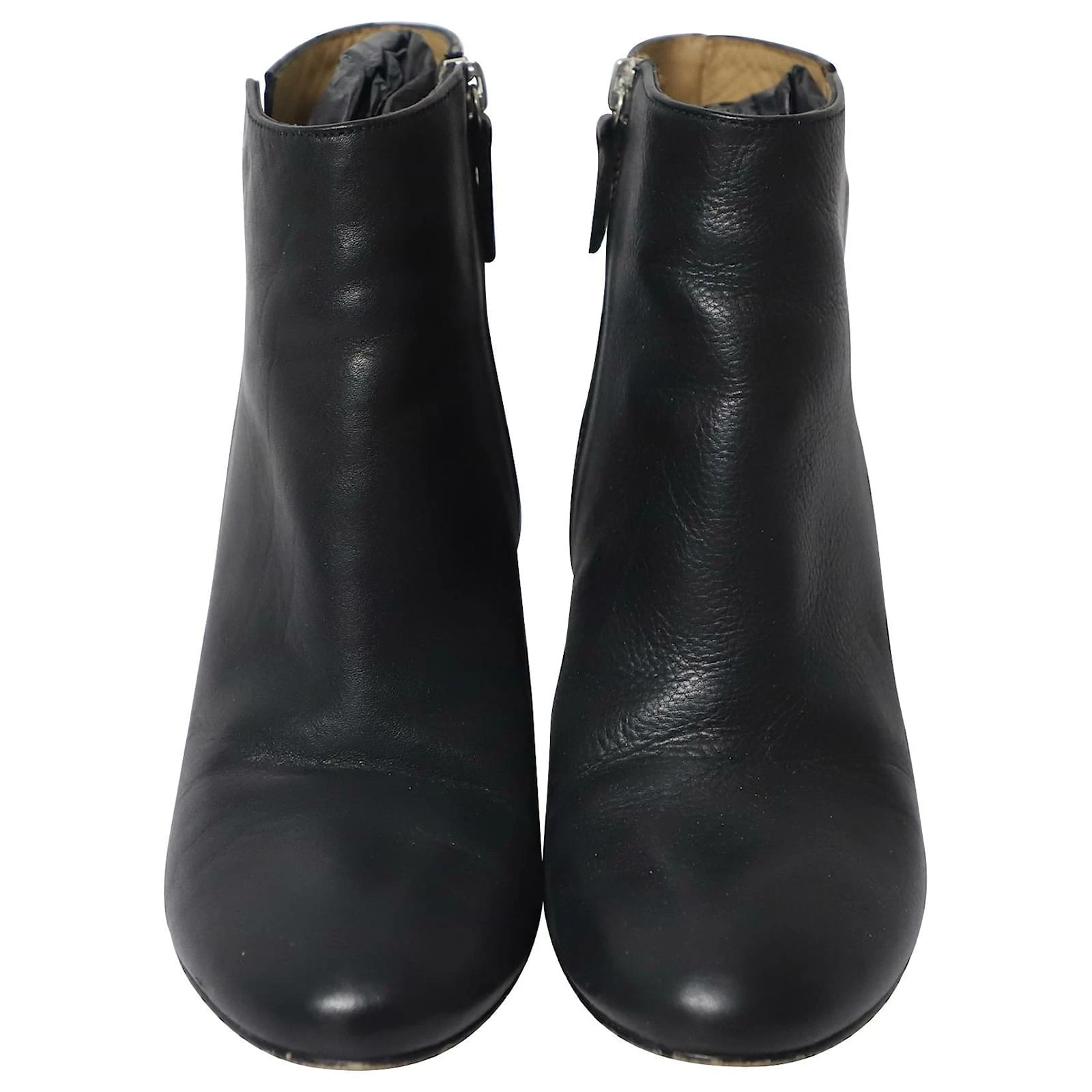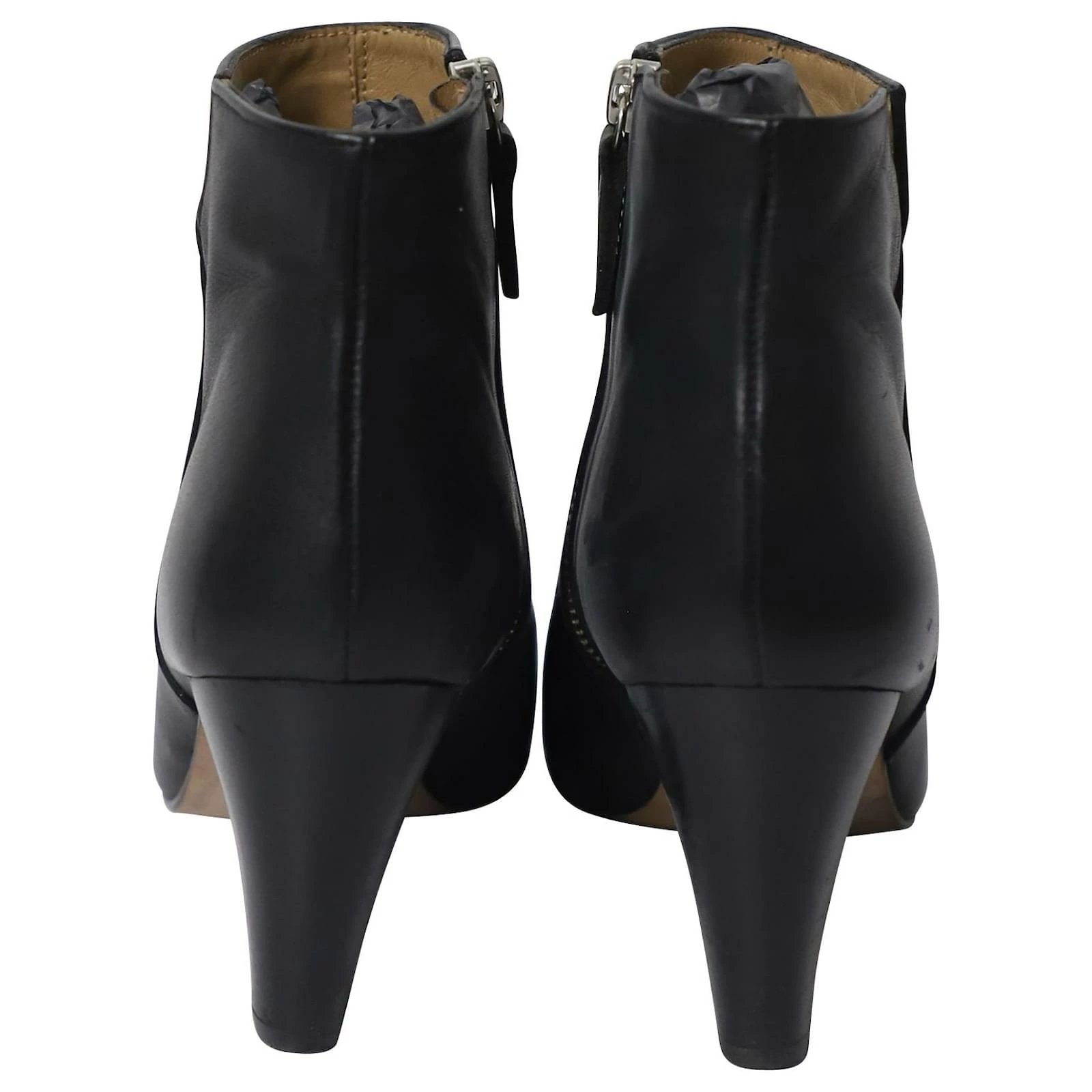 Add a structured and smart feel to your outfit with these boots from Whistles. These ankle boots are made from black leather, almond toes and comfortable chunky heels. The insoles are lined with leather and feature the brand labels and the pair is complete with zipper fastening.