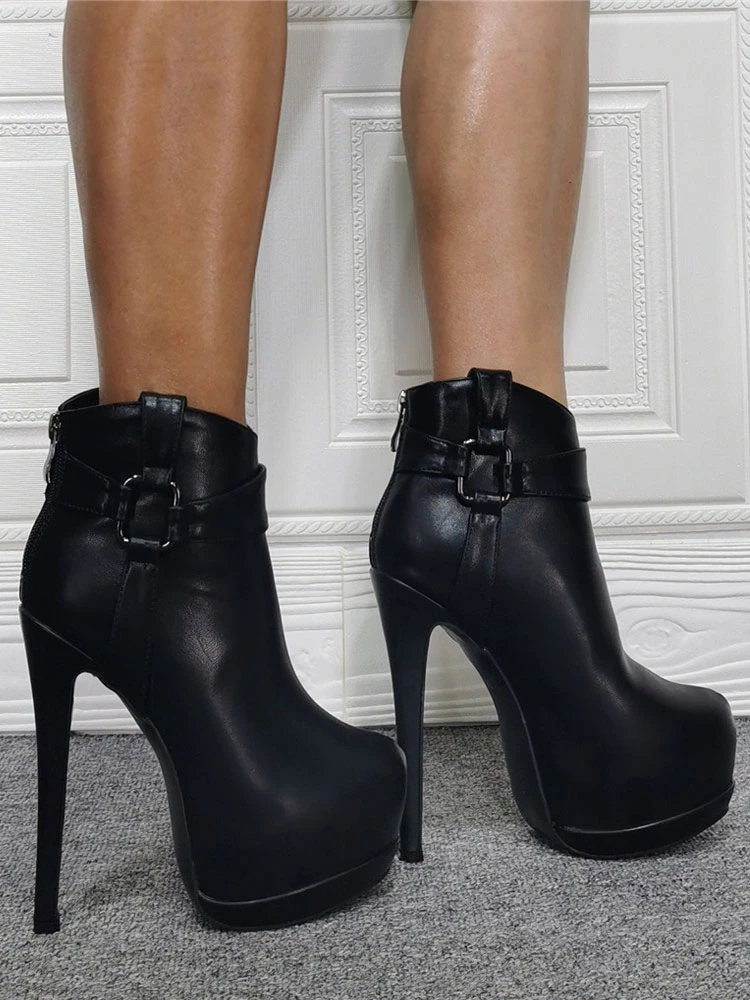 Women Booties Platform Stiletto Heel Geometric Round Toe Platform High Tops Black Ankle Boots