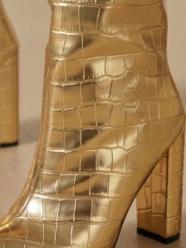 Be the first to review “Women Booties Pointed Toe Chunky Heel PU Leather Blond Knee-High Boots” Cancel reply