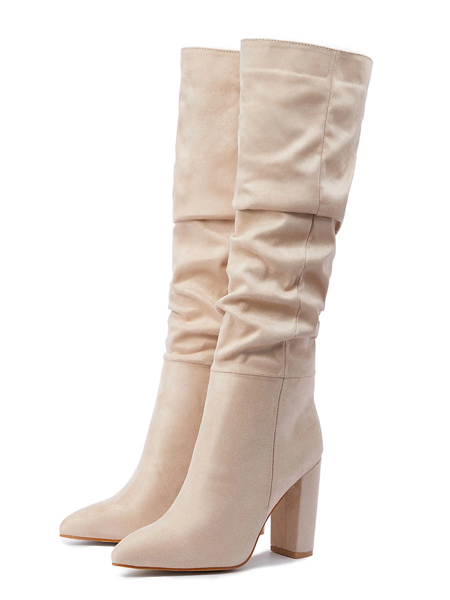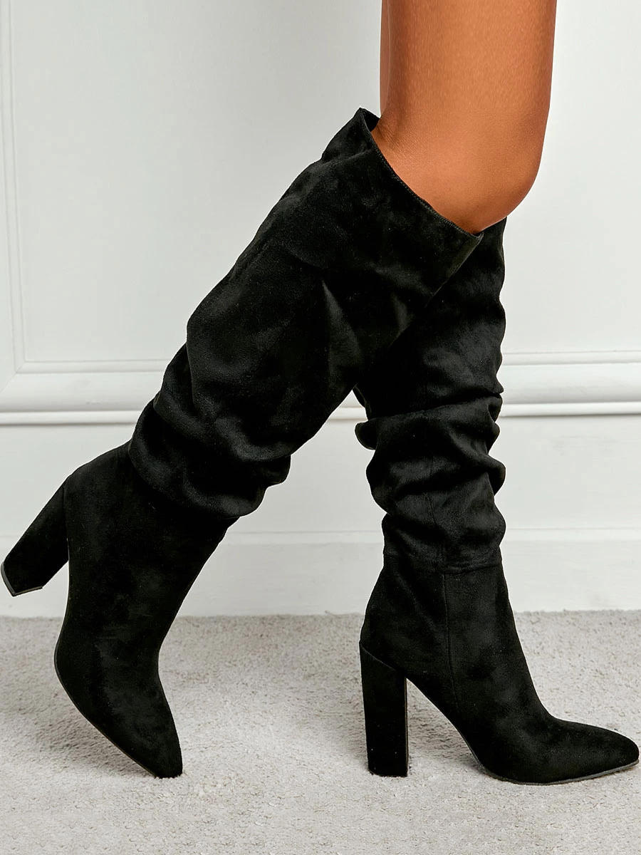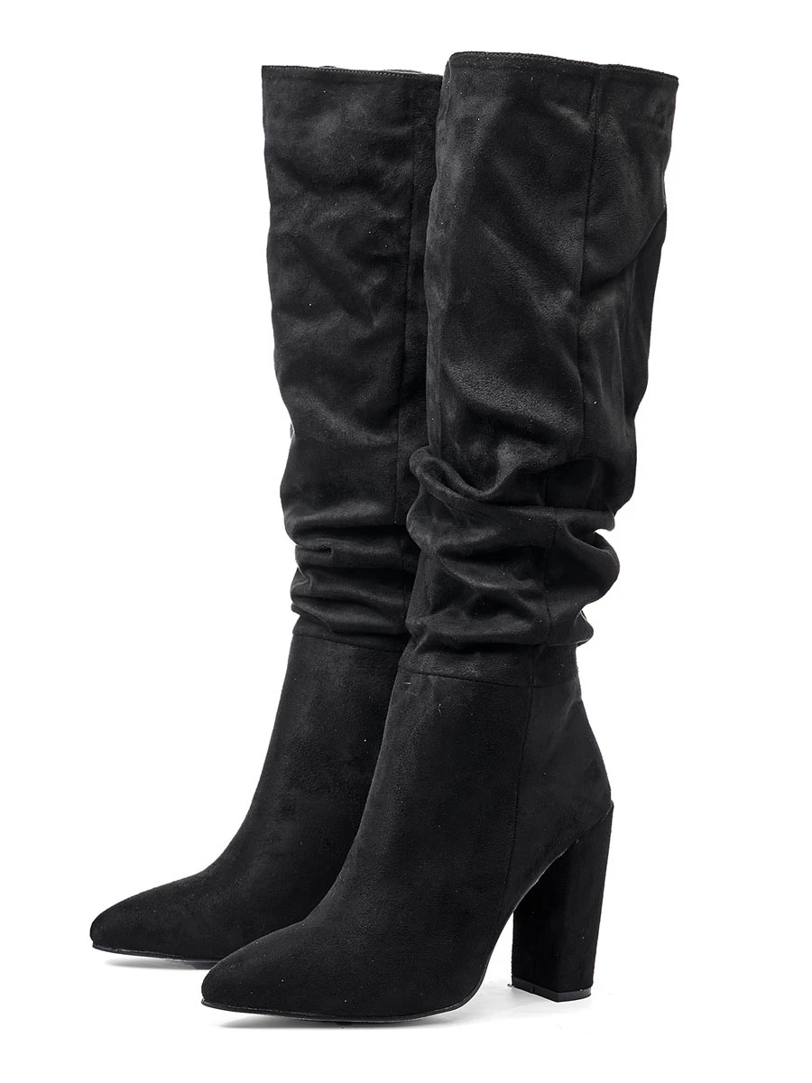 Women Boots Chunky Heel Pointed Toe Micro Suede Martin Boots Knee High Boots