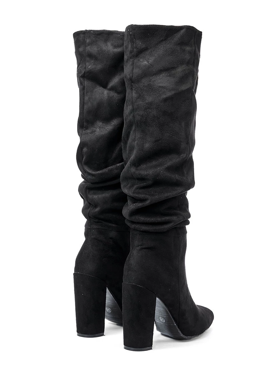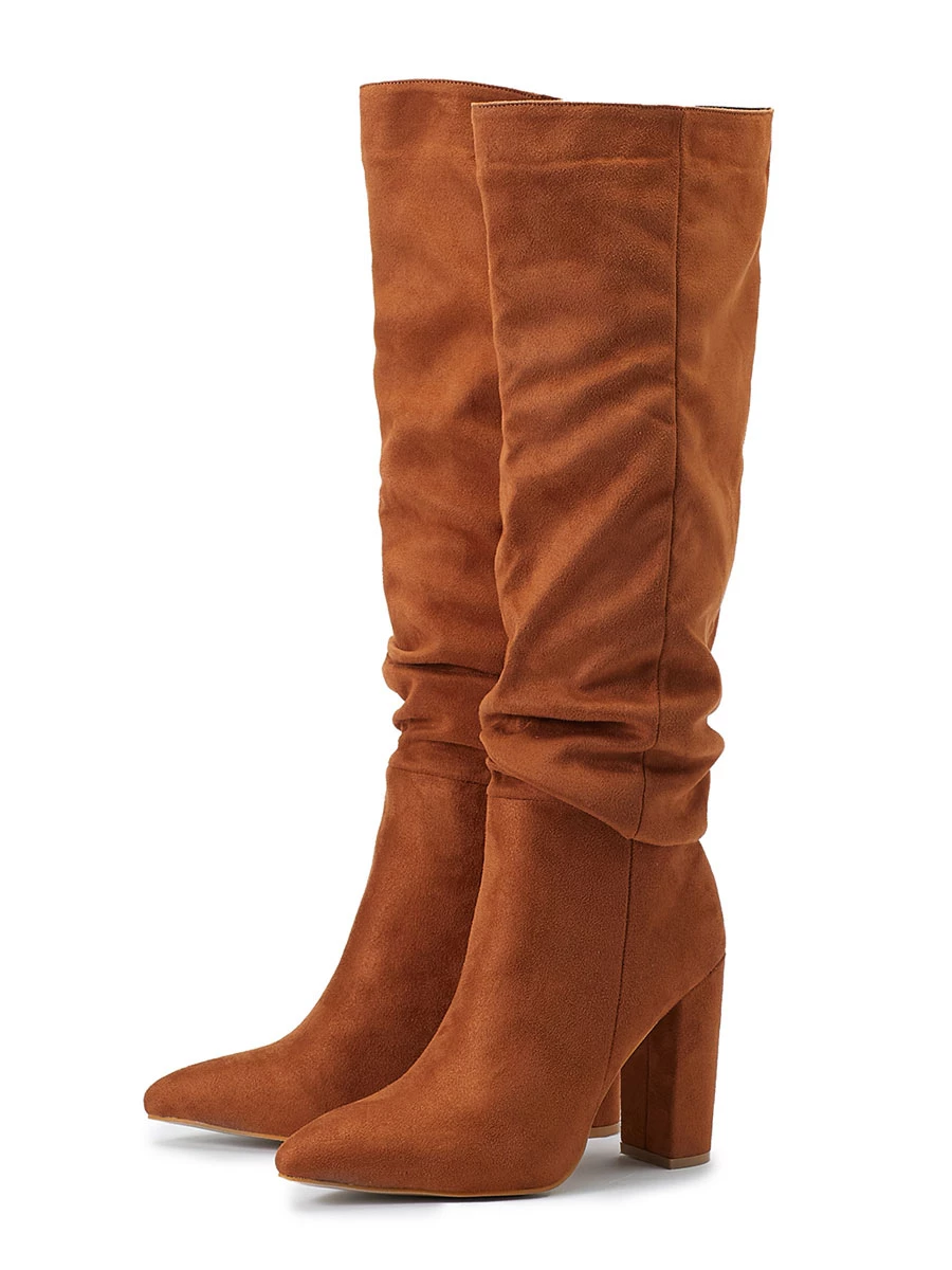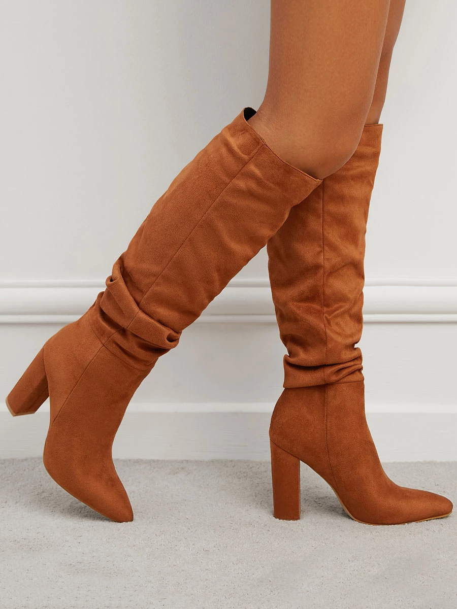 Women Boots Chunky Heel Pointed Toe Micro Suede Martin Boots Knee High Boots