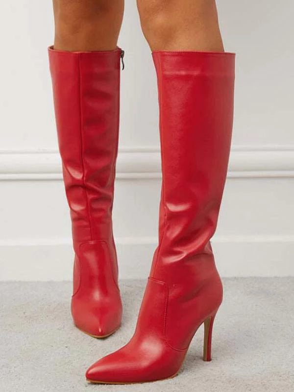 Women Boots Red Stiletto Heel Pointed Toe Knee High Boots