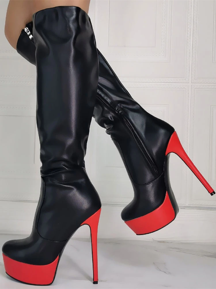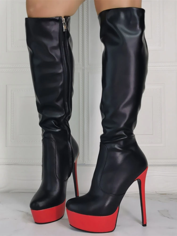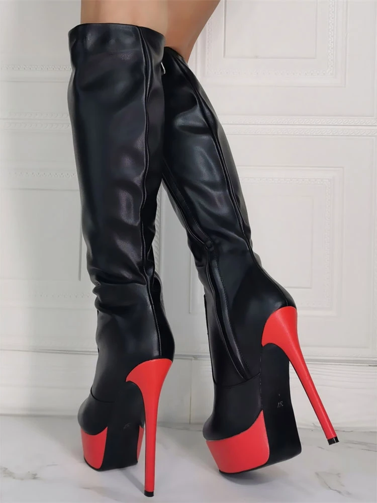 Women Boots Stiletto Heel Plus Size Platform Black Sky High Heel Knee High Boots
