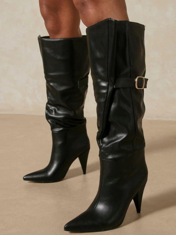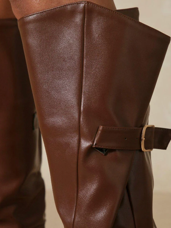 Be the first to review “Women Boots Stiletto Heel Pointed Toe PU Leather Chocolate Brown Knee-High Boots” Cancel reply