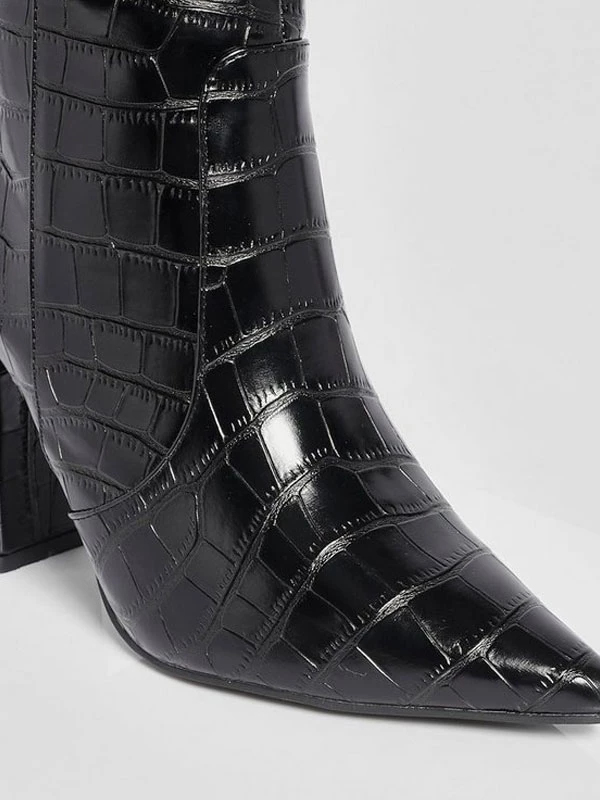 Be the first to review “Women Knee High Boots Leather Black Round Toe Stone Patter Chunky Heel Boots” Cancel reply
