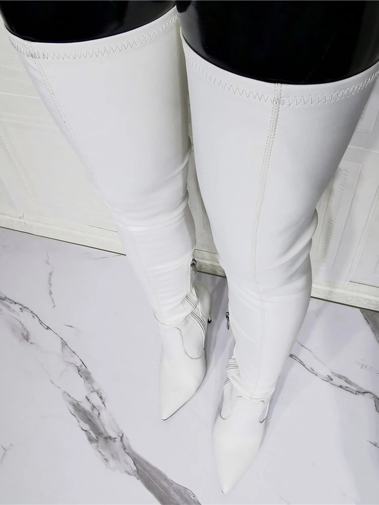 Women Over The Knee Boots Plus Size Stiletto Heel PU Leather Black Thigh High Boots