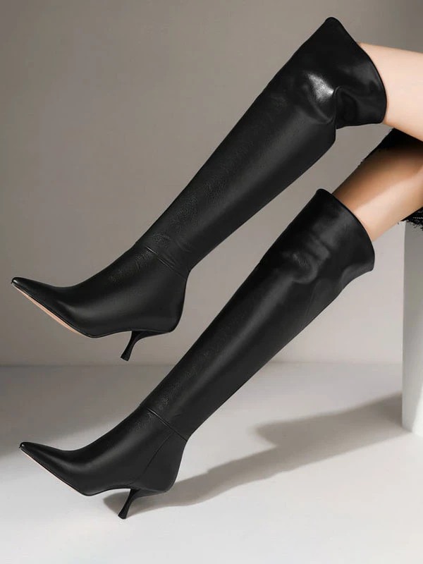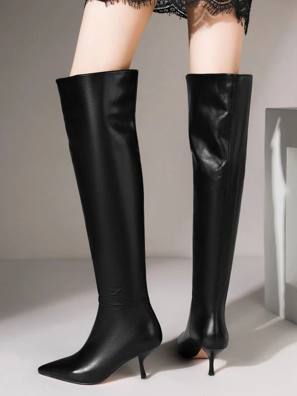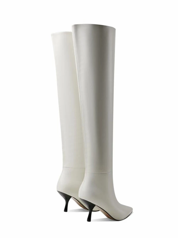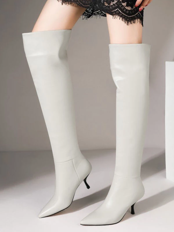 Women Over The Knee Boots Stiletto Heel Pointed Toe PU Leather Eric White Thigh High Boots