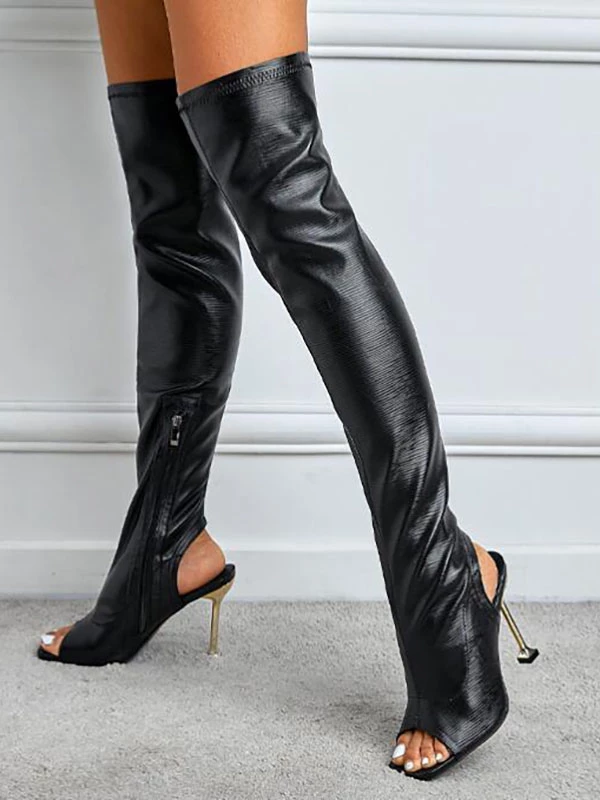 Women Over The Knee Boots Stiletto Heel Pointed Toe PU Leather White Thigh High Boots