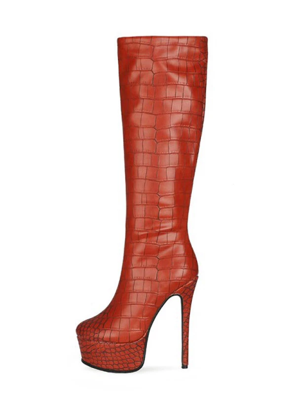 Women’s Animal Print Platform Stiletto Heel Knee High Boots