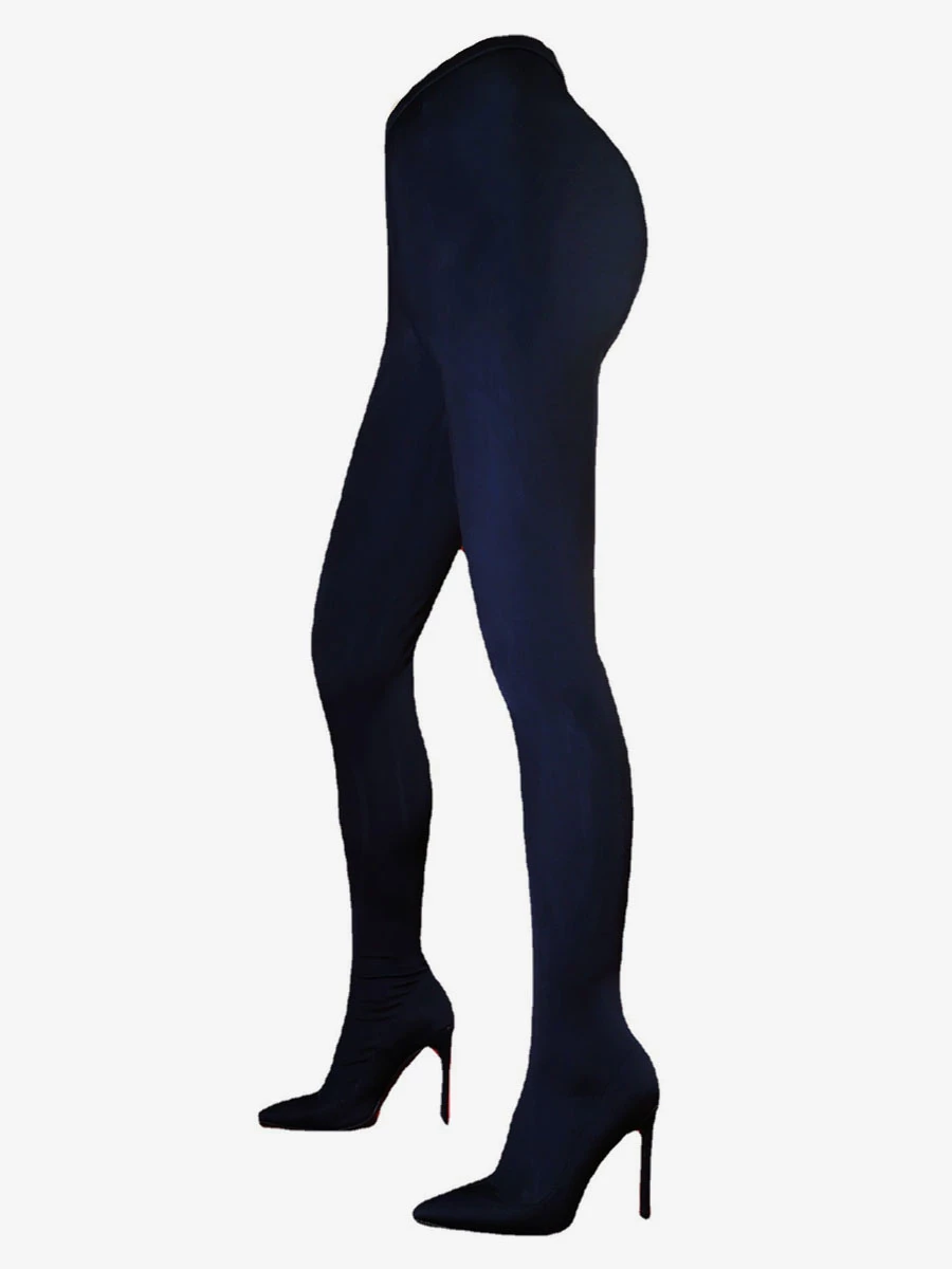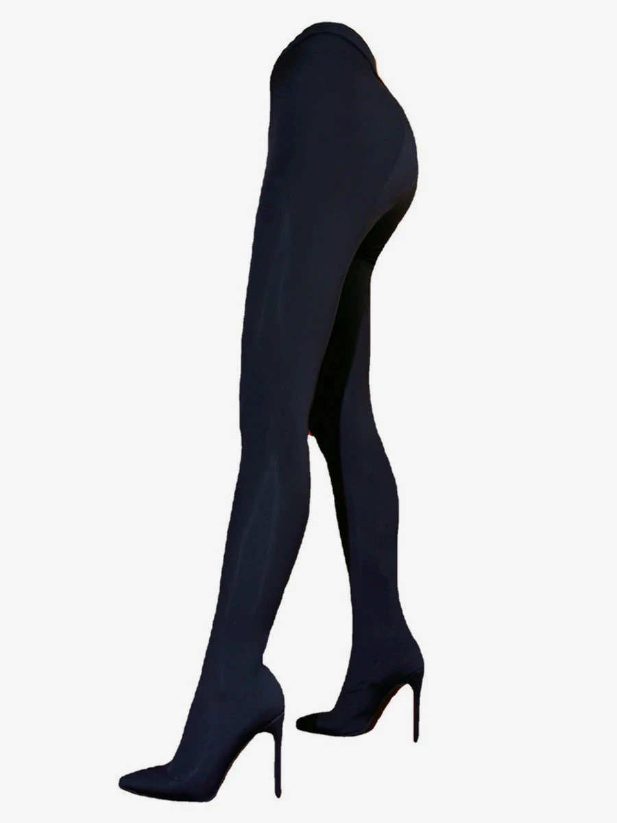 Women’s Black Pant Shoes Elastic Stiletto Heel Thigh High Boots