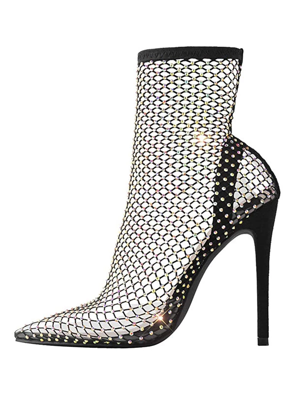 Women’s Clear Boots Pointed Toe High Heel Studded Transparent Booties Sexy Fishnet Sock Boots
