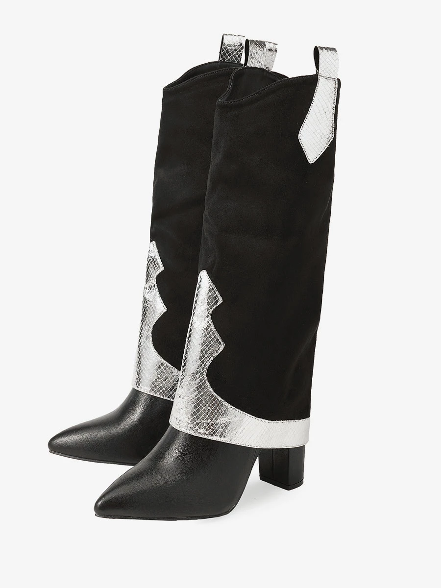 Women’s Slouch Boots Suede Pointed Toe High Heel Knee High Boots