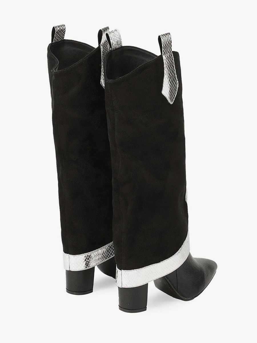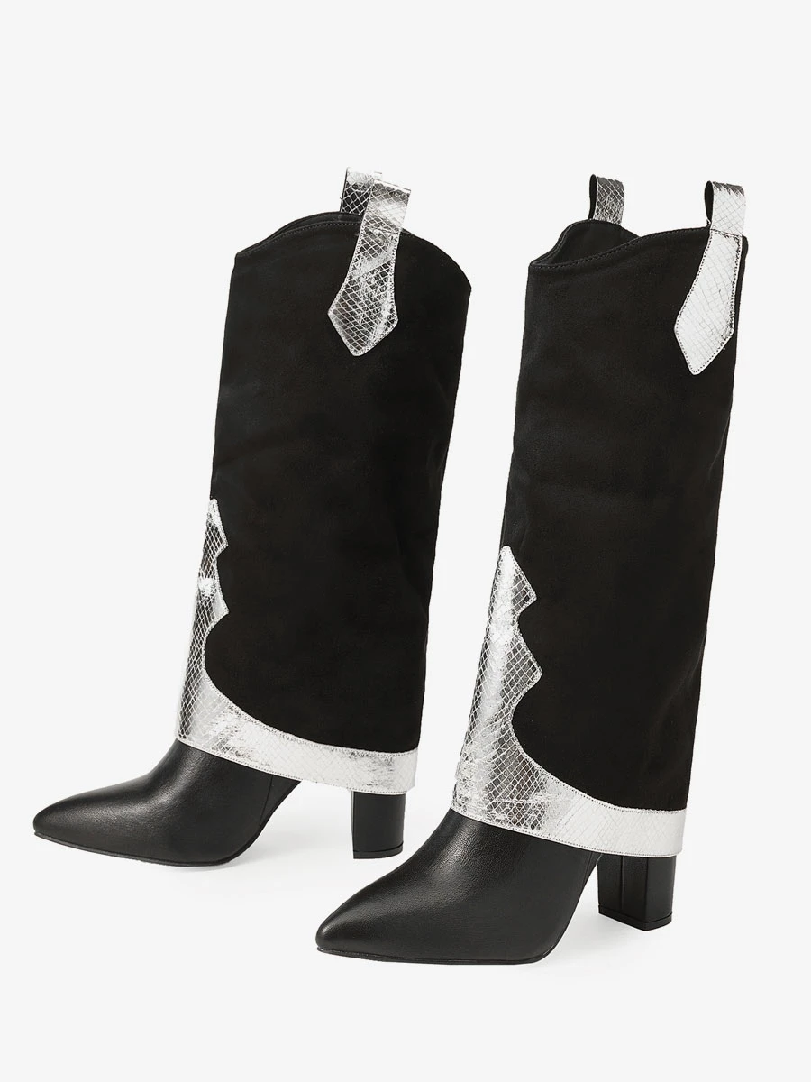 Be the first to review “Women’s Knee High Boots Black Suede Pointed Toe Chunky Heel Knee Length Boots” Cancel reply