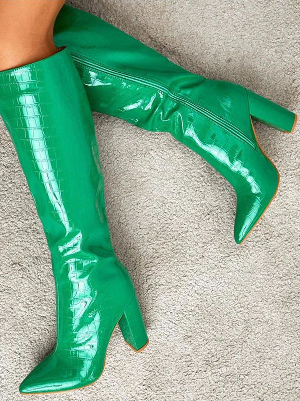 Women’s Knee High Boots Chunky Heel Pointy Toe