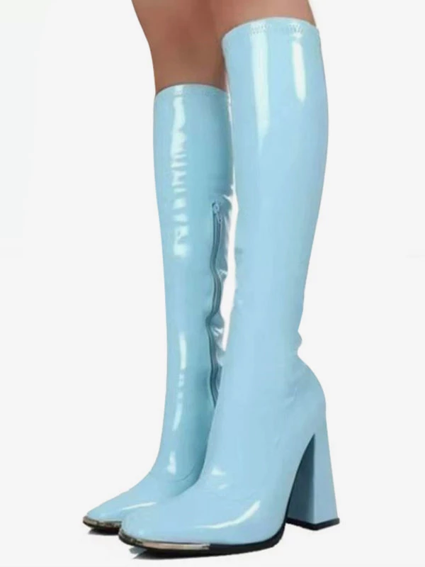 Women’s Knee High Boots Patent PU Upper Chunky Heel Boots