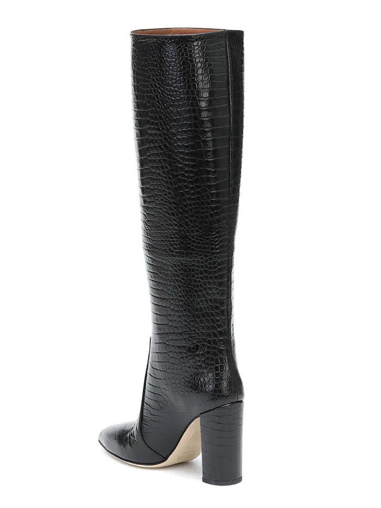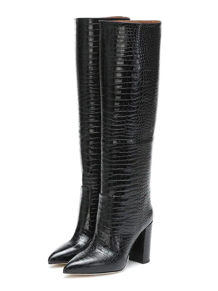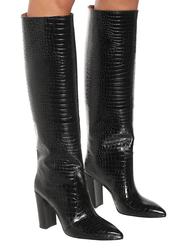 Women’s Knee Length Boots Black Pointed Toe High Heel Boots