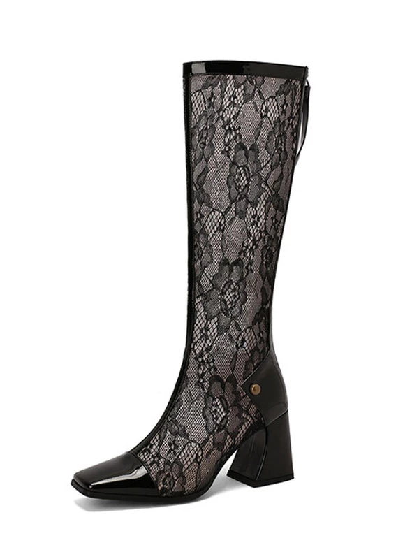 Women’s Patent PU Upper Chunky Heel Knee-High Boots
