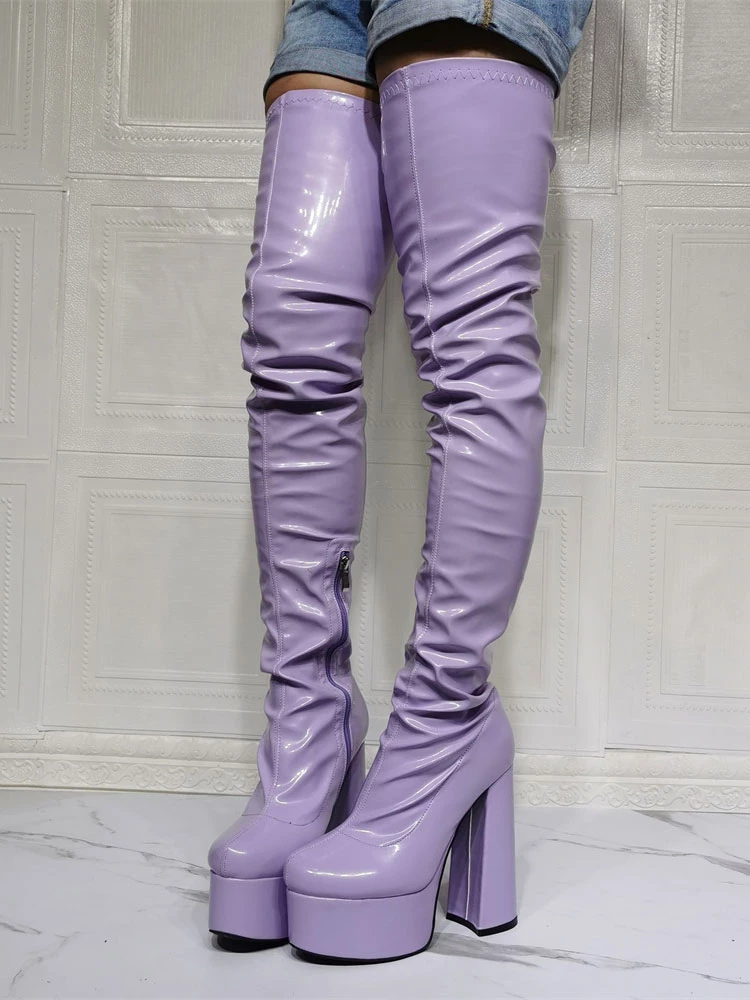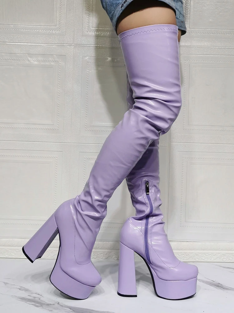 Women’s Platform Over The Knee Boots Sexy Platform Block Heel Thigh High Boots In Purple