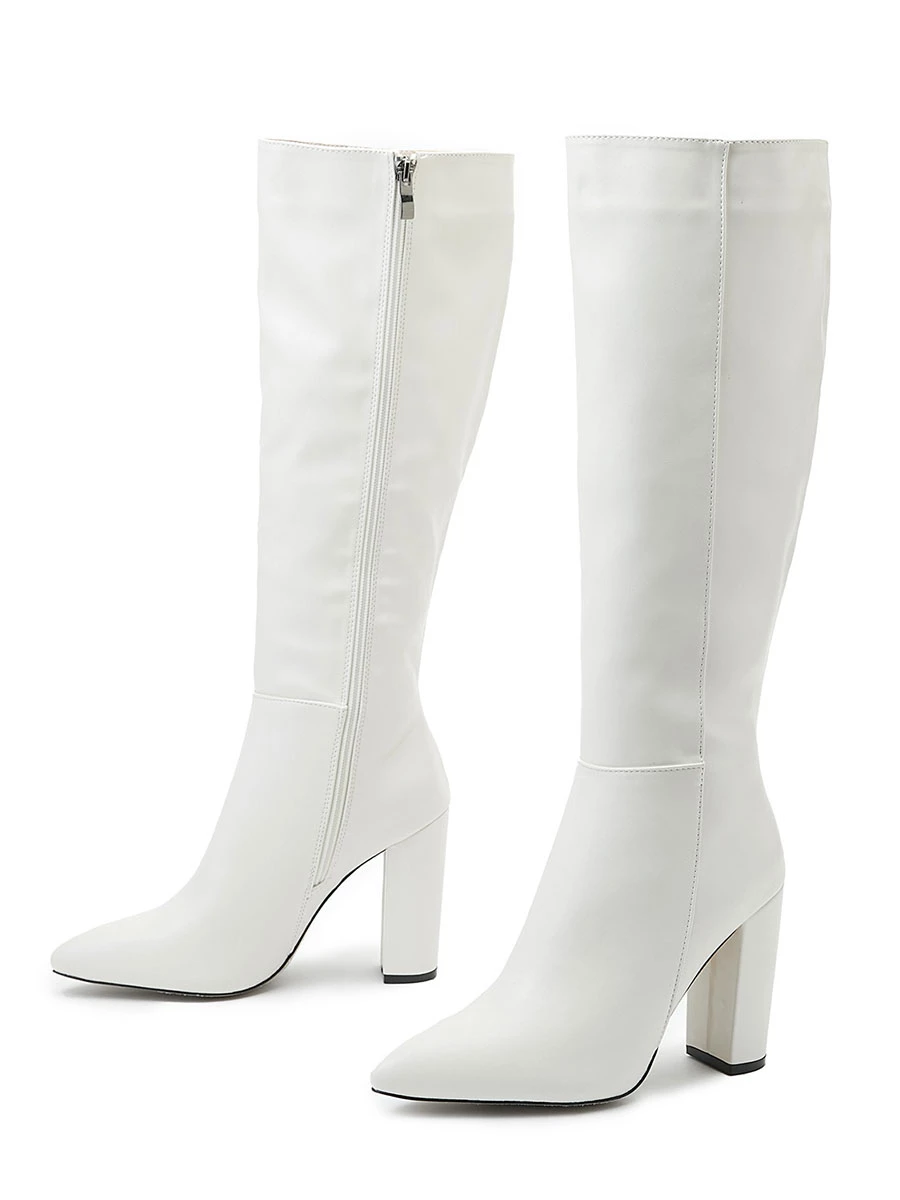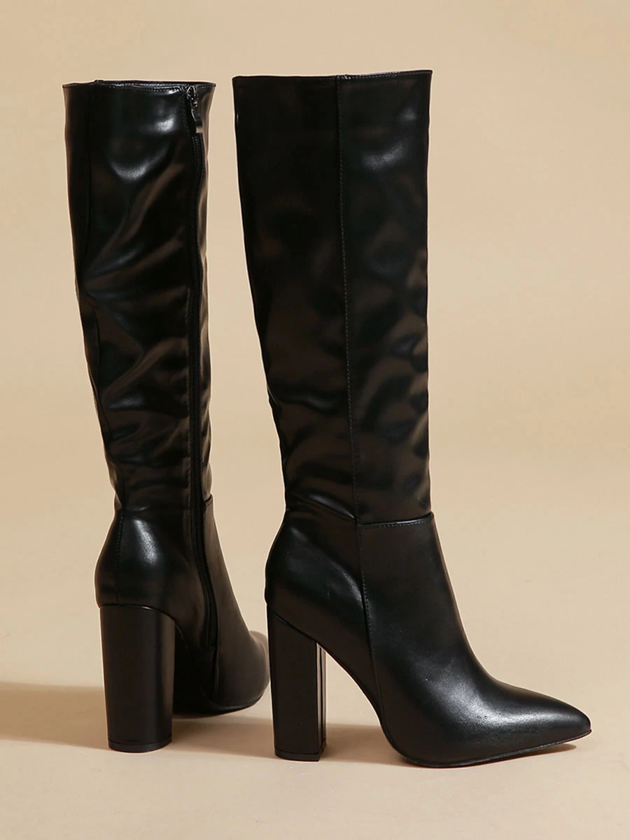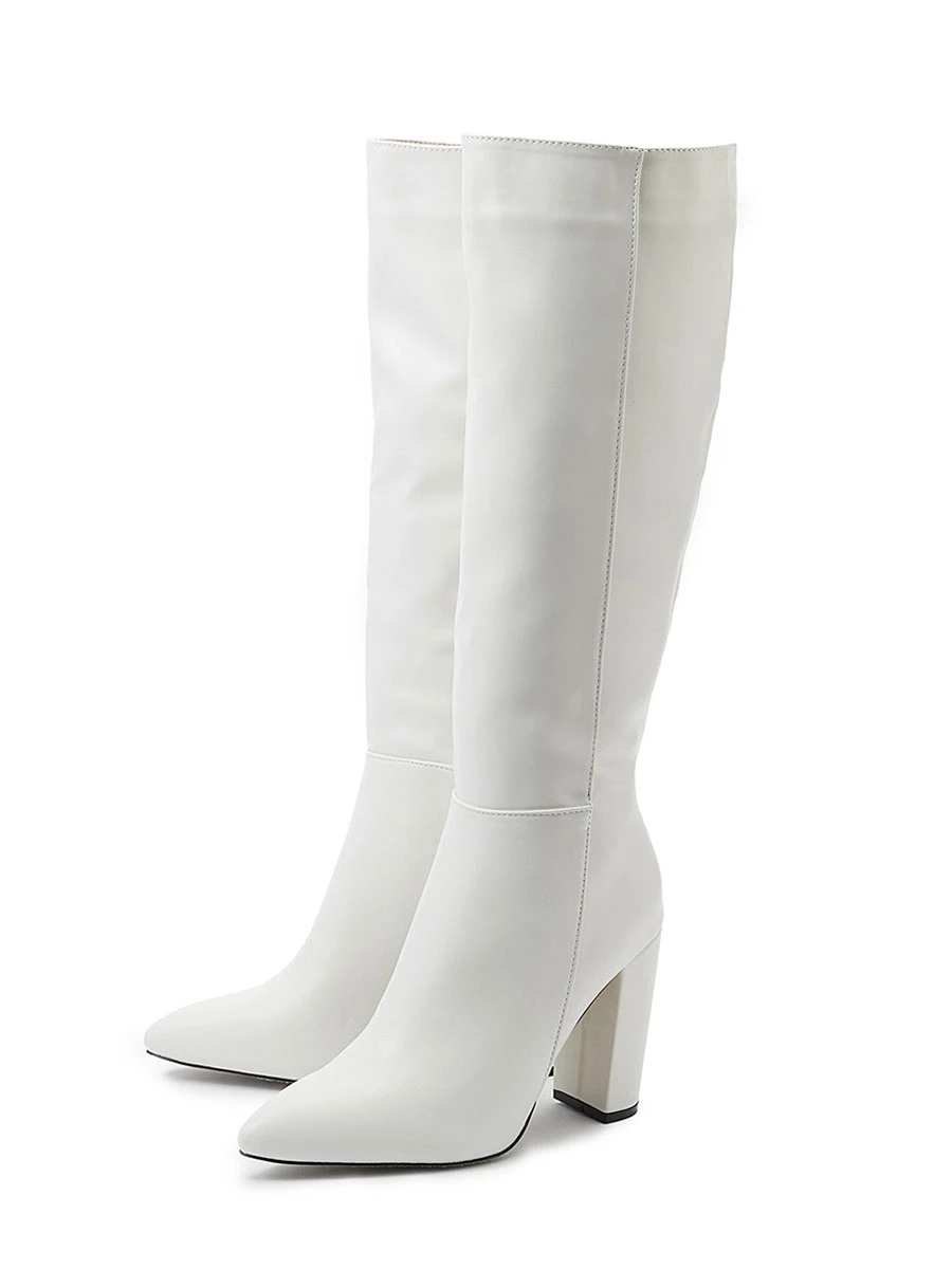 Women’s PU Leather Chunky Heel Knee-High Boots