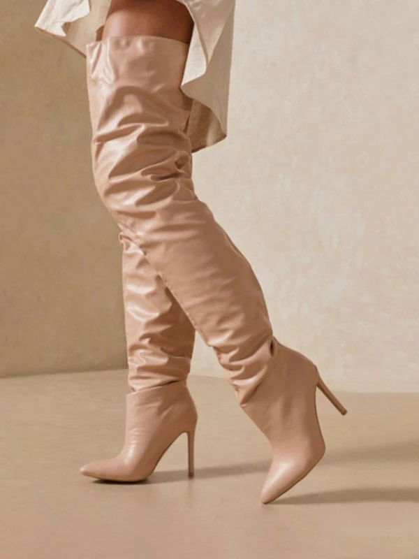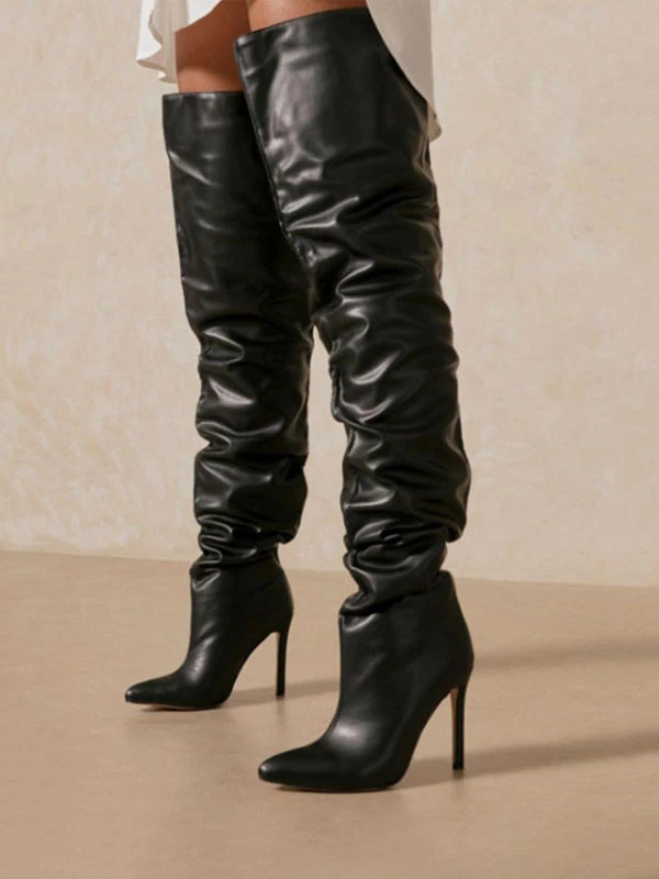 Women’s Slouch Boots Pointy Toe Stiletto Heel Wide Thigh High Boots