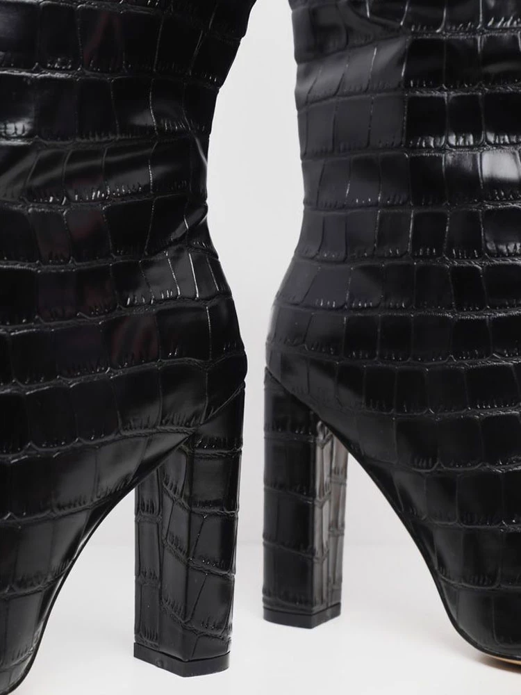 Be the first to review “Women’s Stone Grain Chunky Bright Leather Heel Knee High Boots” Cancel reply