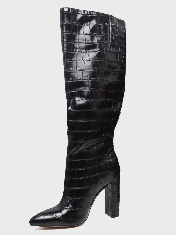 Women’s Stone Grain Chunky Bright Leather Heel Knee High Boots