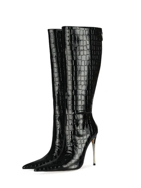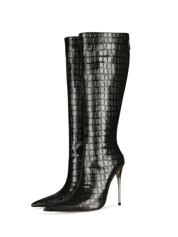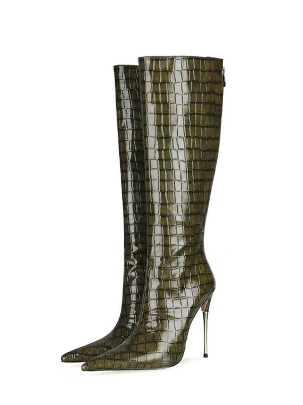 Women’s Stone Grain Stiletto Heel Knee High Boots