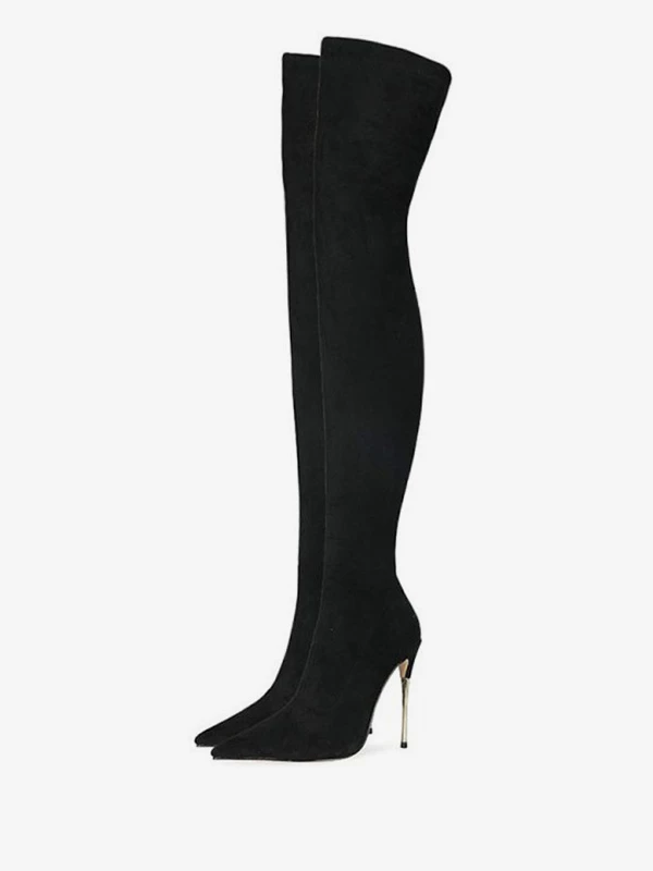 Black Thigh High Boots Women Sexy Boots Pointed Toe Stiletto Heel Over The Knee Boots