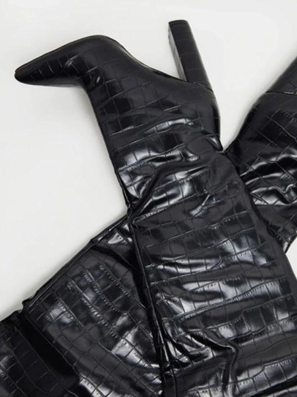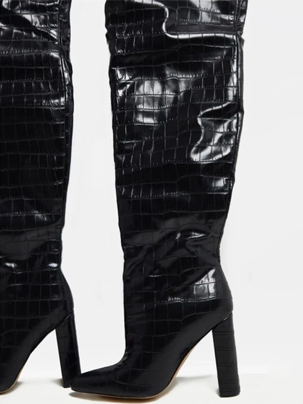 Women’s Tigh High Boots Chunky Heel PU Leather Slouch Over The Knee Boots