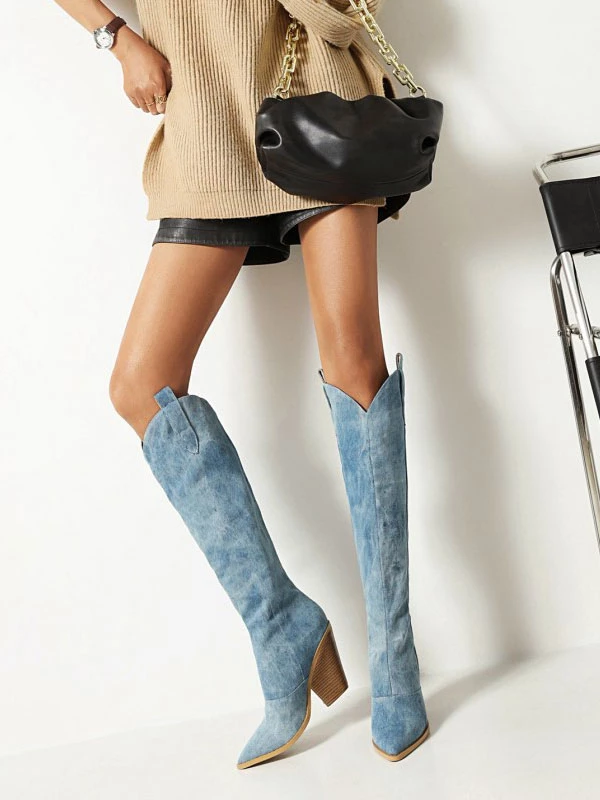 Be the first to review “Women ‘s Western Boots Canvas Chunky Heel Knee-High Boots” Cancel reply